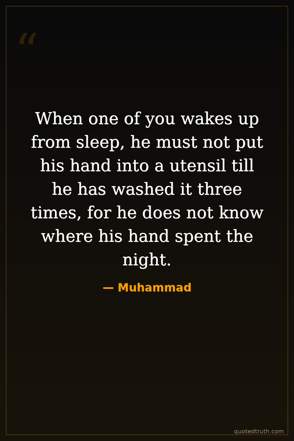 When one of you wakes up from sleep, he must not put his hand into a utensil till he has washed it three times, for he does not know where his hand spent the night.
