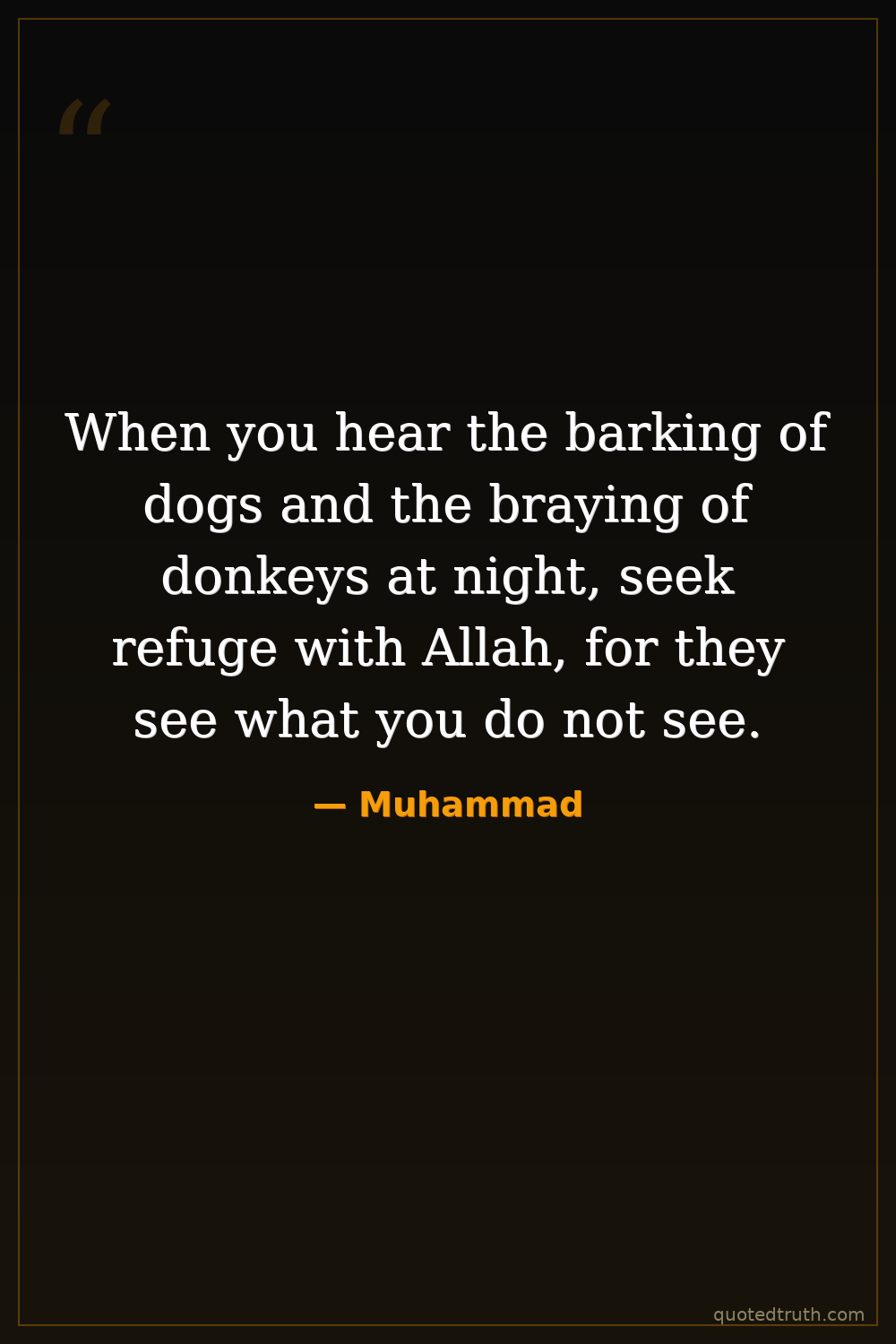When you hear the barking of dogs and the braying of donkeys at night, seek refuge with Allah, for they see what you do not see.