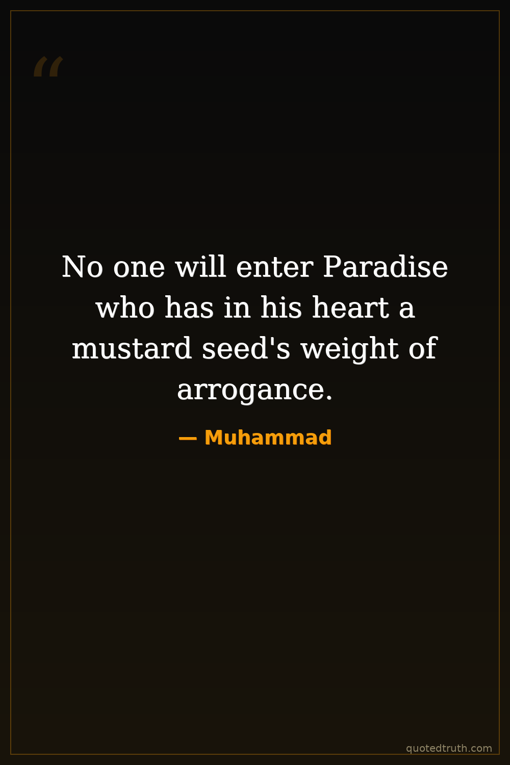 No one will enter Paradise who has in his heart a mustard seed's weight of arrogance.