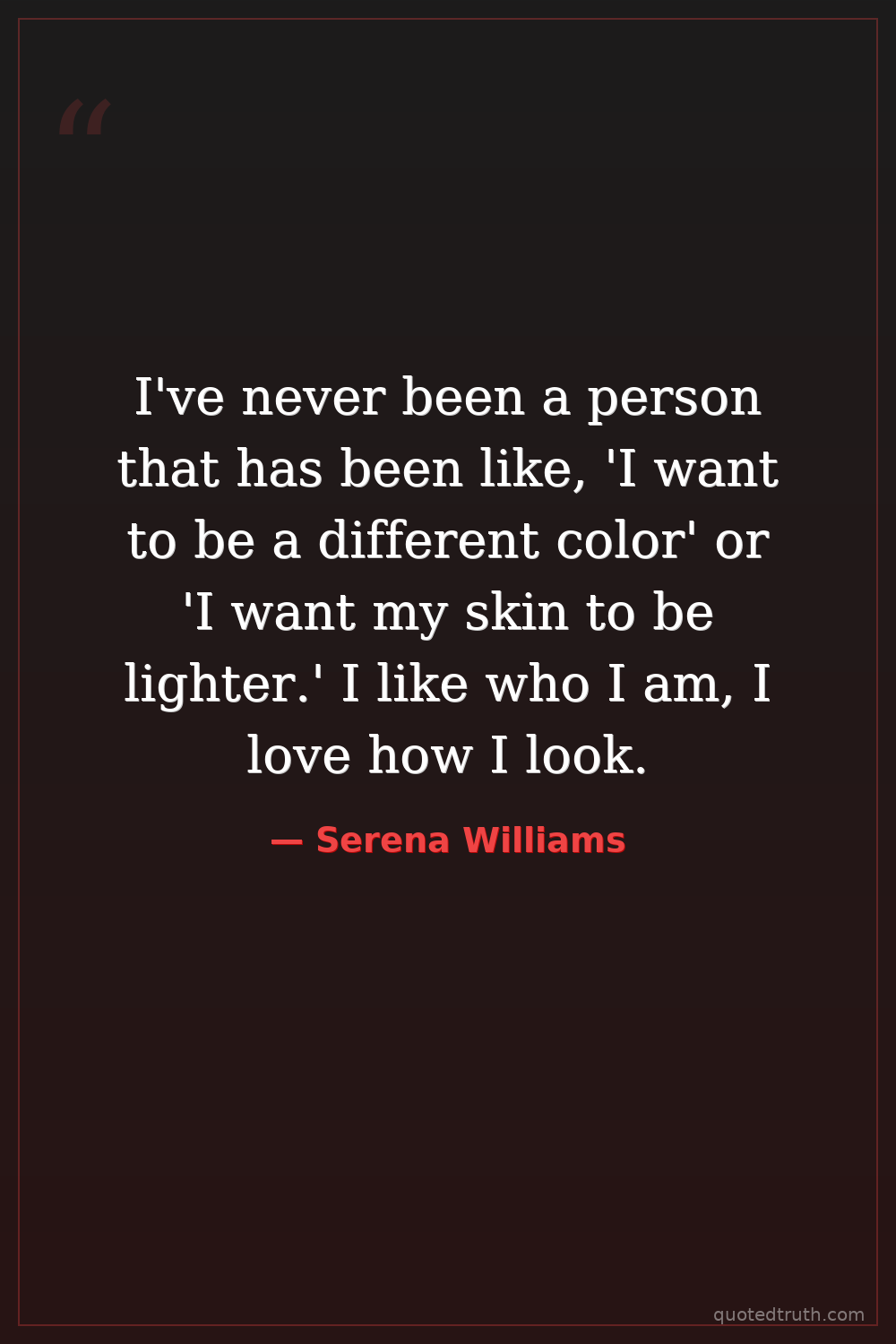 I've never been a person that has been like, 'I want to be a different color' or 'I want my skin to be lighter.' I like who I am, I love how I look.