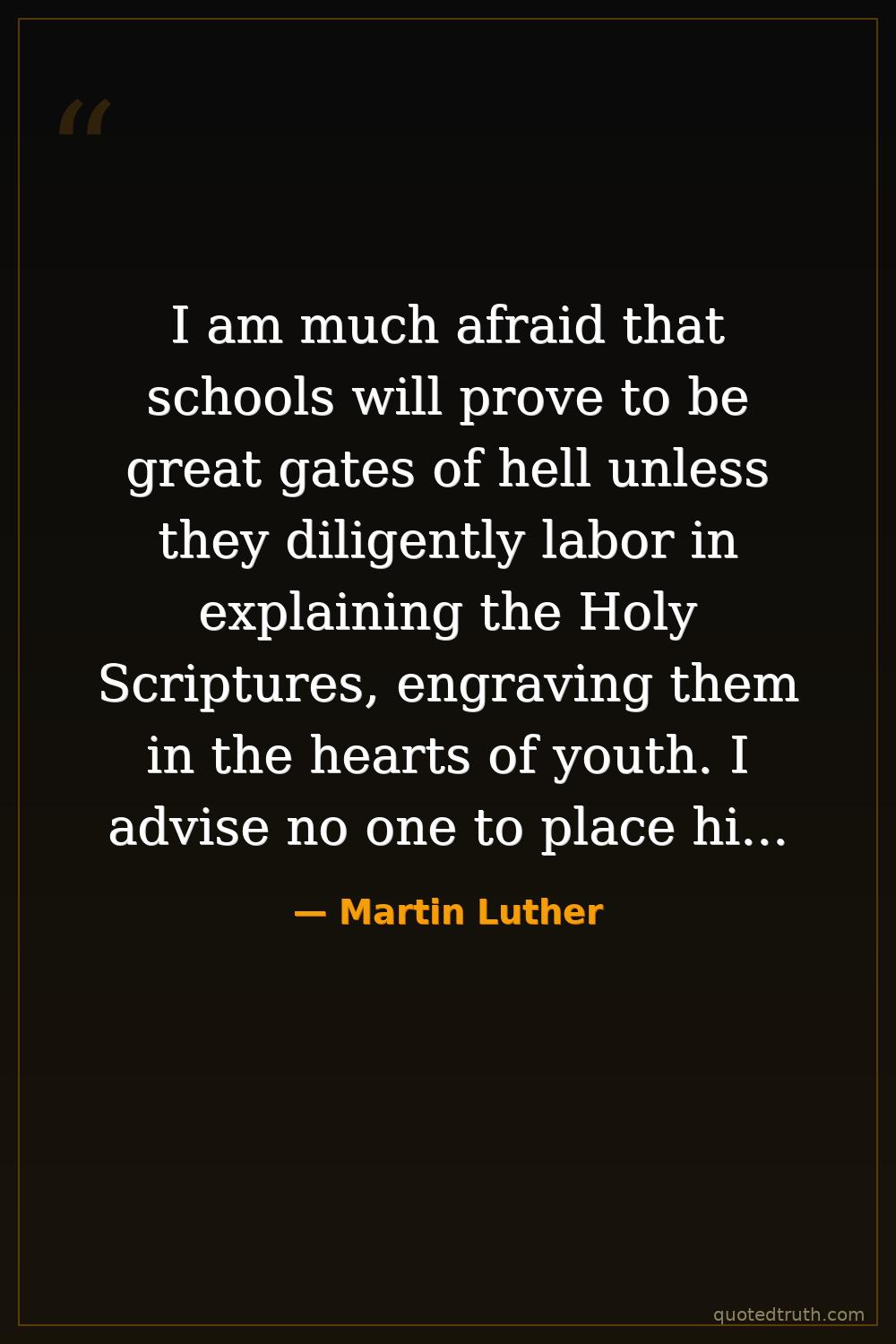 I am much afraid that schools will prove to be great gates of hell unless they diligently labor in explaining the Holy Scriptures, engraving them in the hearts of youth. I advise no one to place his child where the Scriptures do not reign paramount.