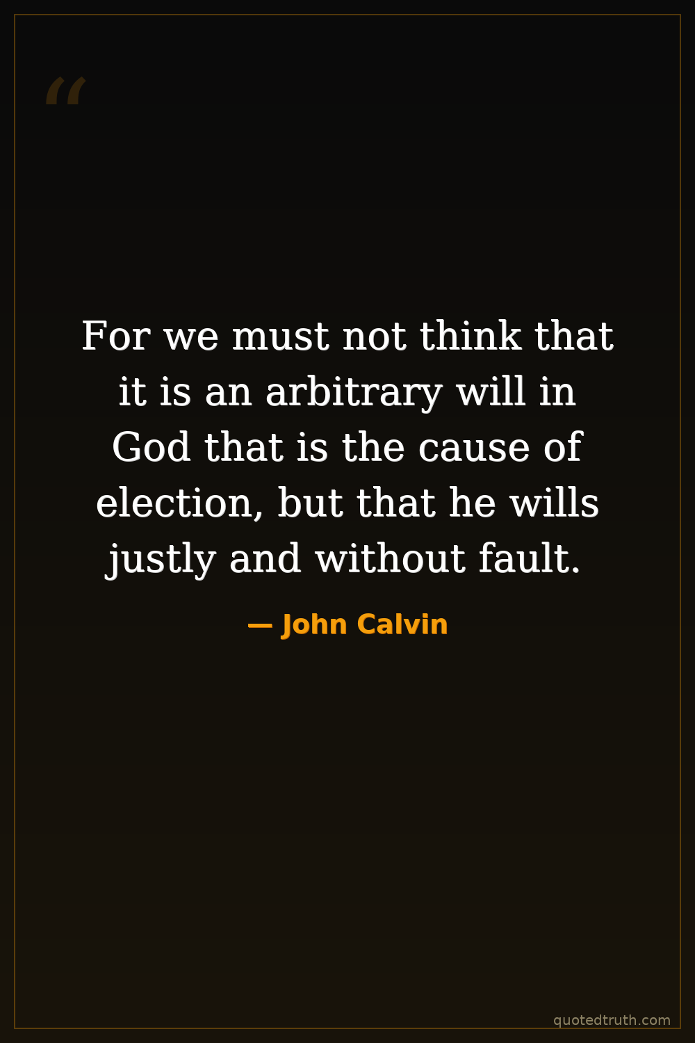 For we must not think that it is an arbitrary will in God that is the cause of election, but that he wills justly and without fault.