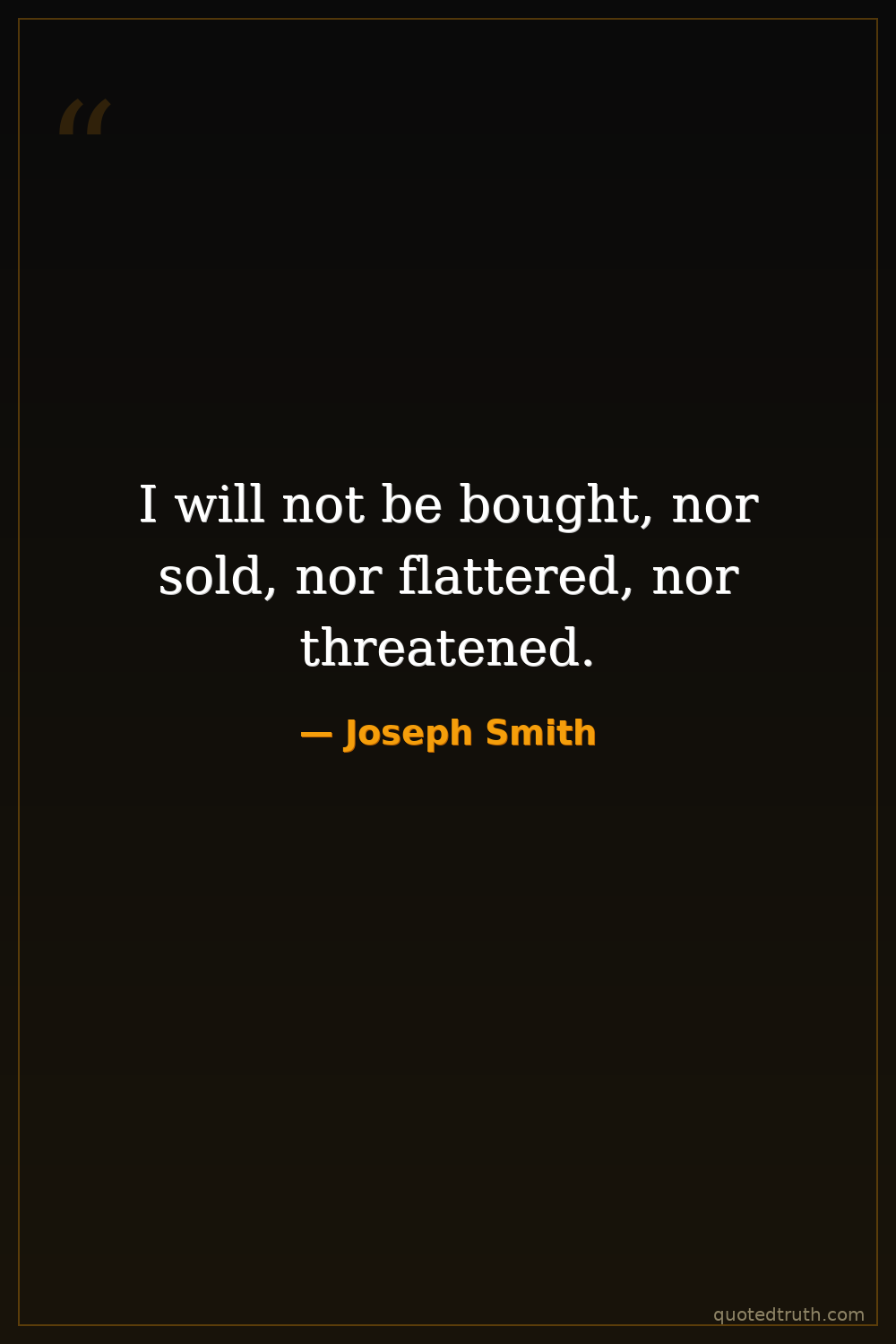 I will not be bought, nor sold, nor flattered, nor threatened.