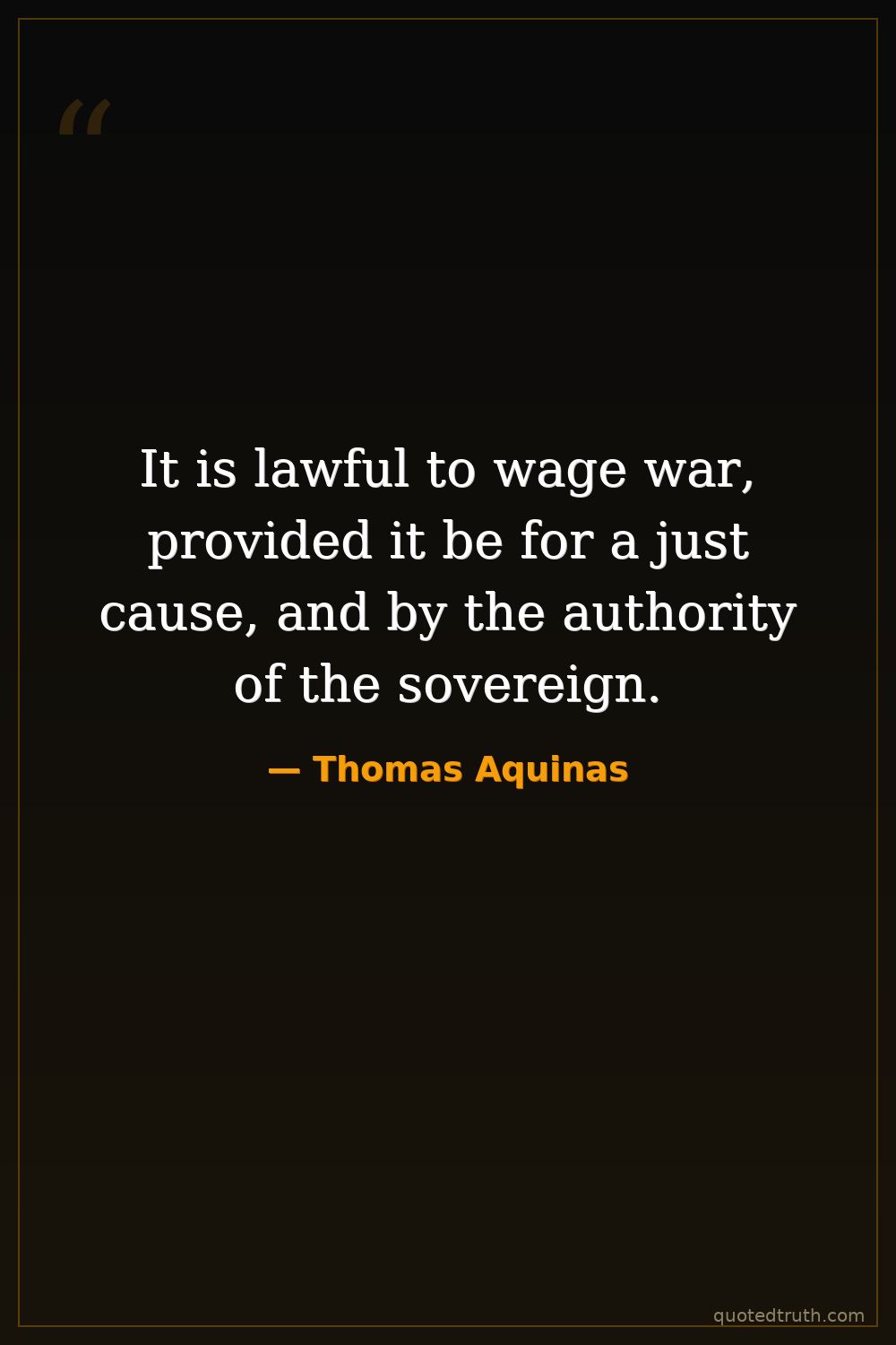 It is lawful to wage war, provided it be for a just cause, and by the authority of the sovereign.
