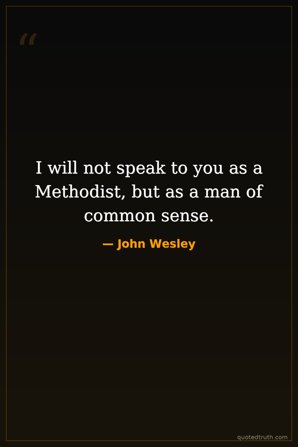 I will not speak to you as a Methodist, but as a man of common sense.