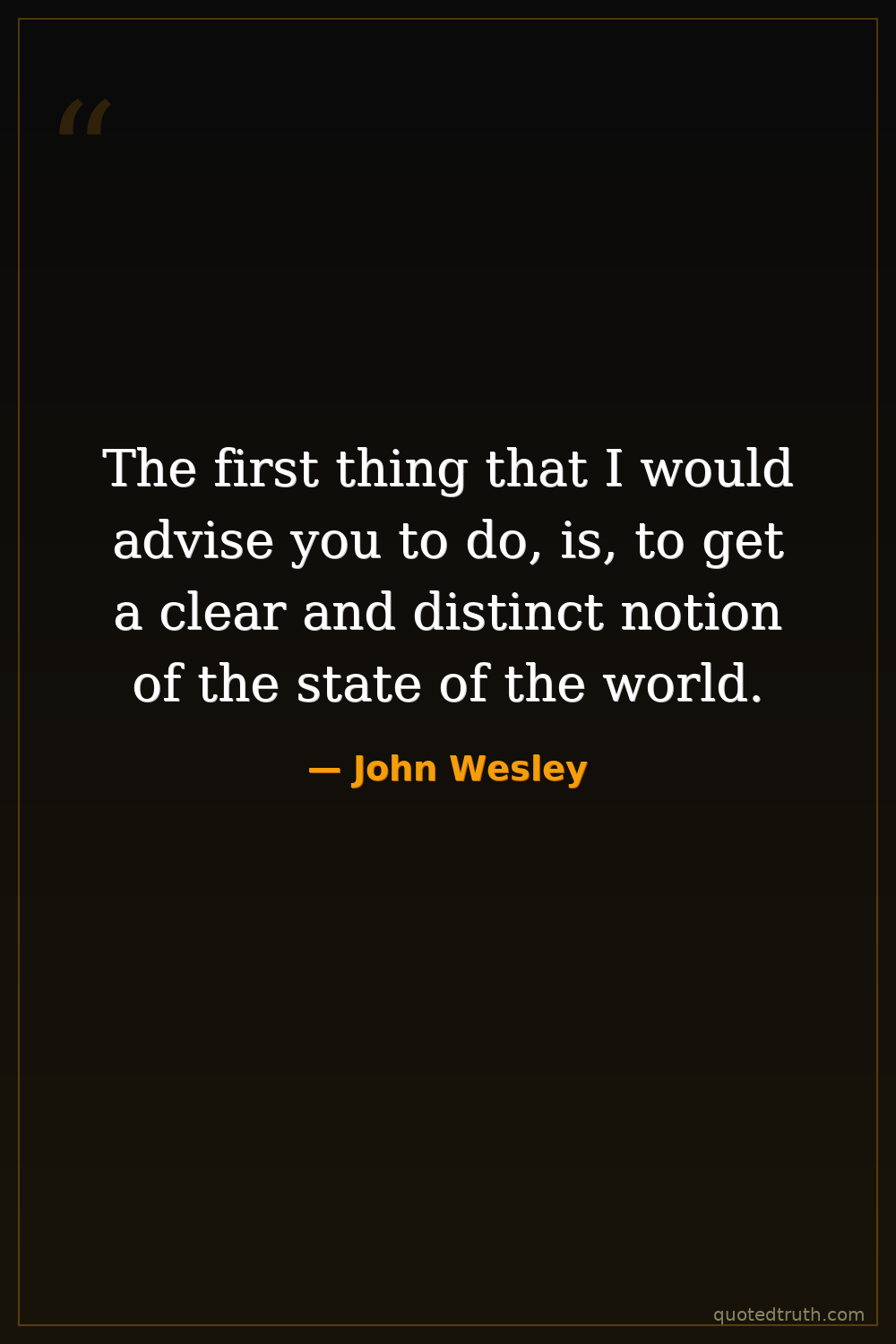 The first thing that I would advise you to do, is, to get a clear and distinct notion of the state of the world.