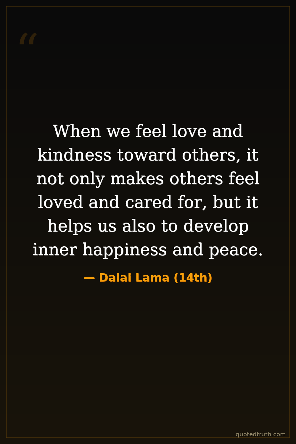 When we feel love and kindness toward others, it not only makes others feel loved and cared for, but it helps us also to develop inner happiness and peace.