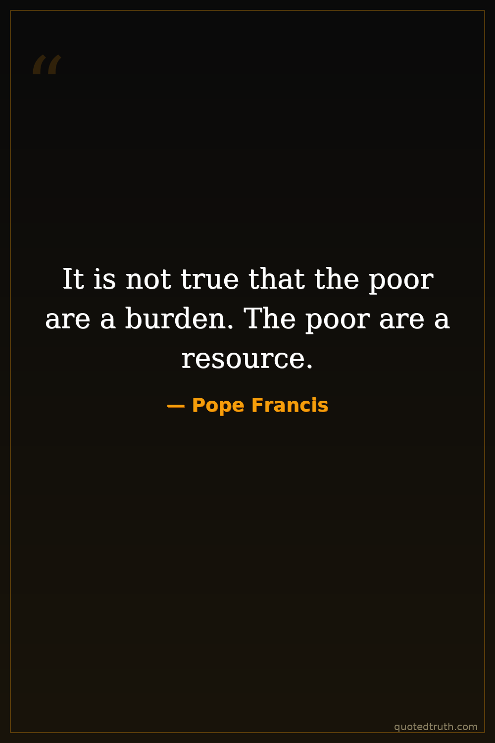 It is not true that the poor are a burden. The poor are a resource.