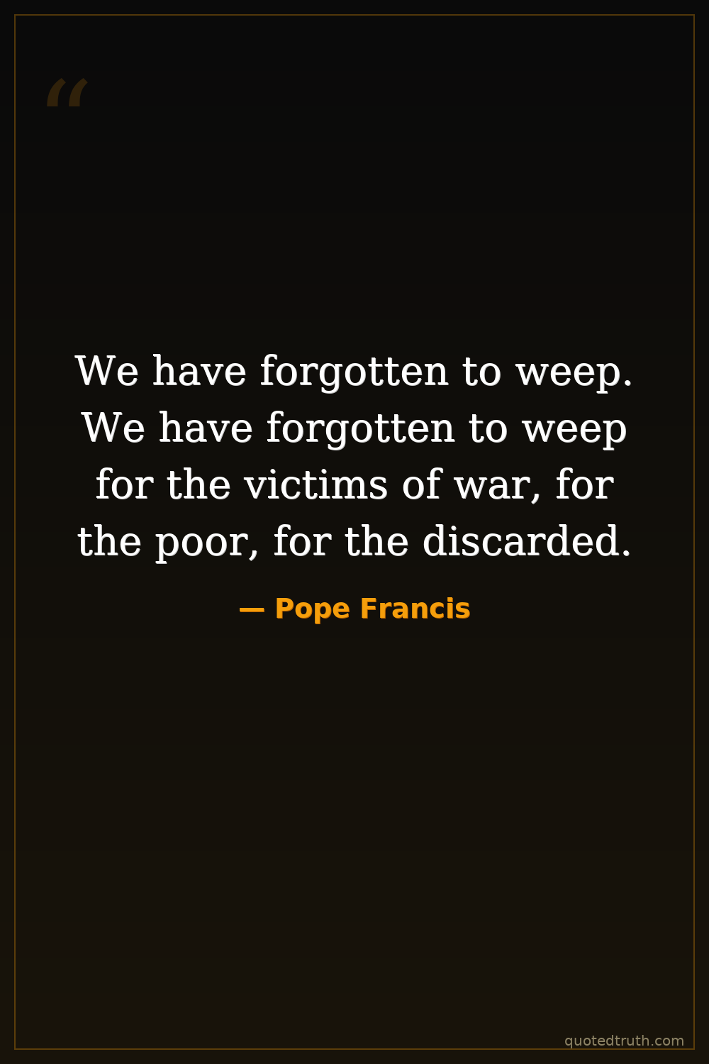 We have forgotten to weep. We have forgotten to weep for the victims of war, for the poor, for the discarded.