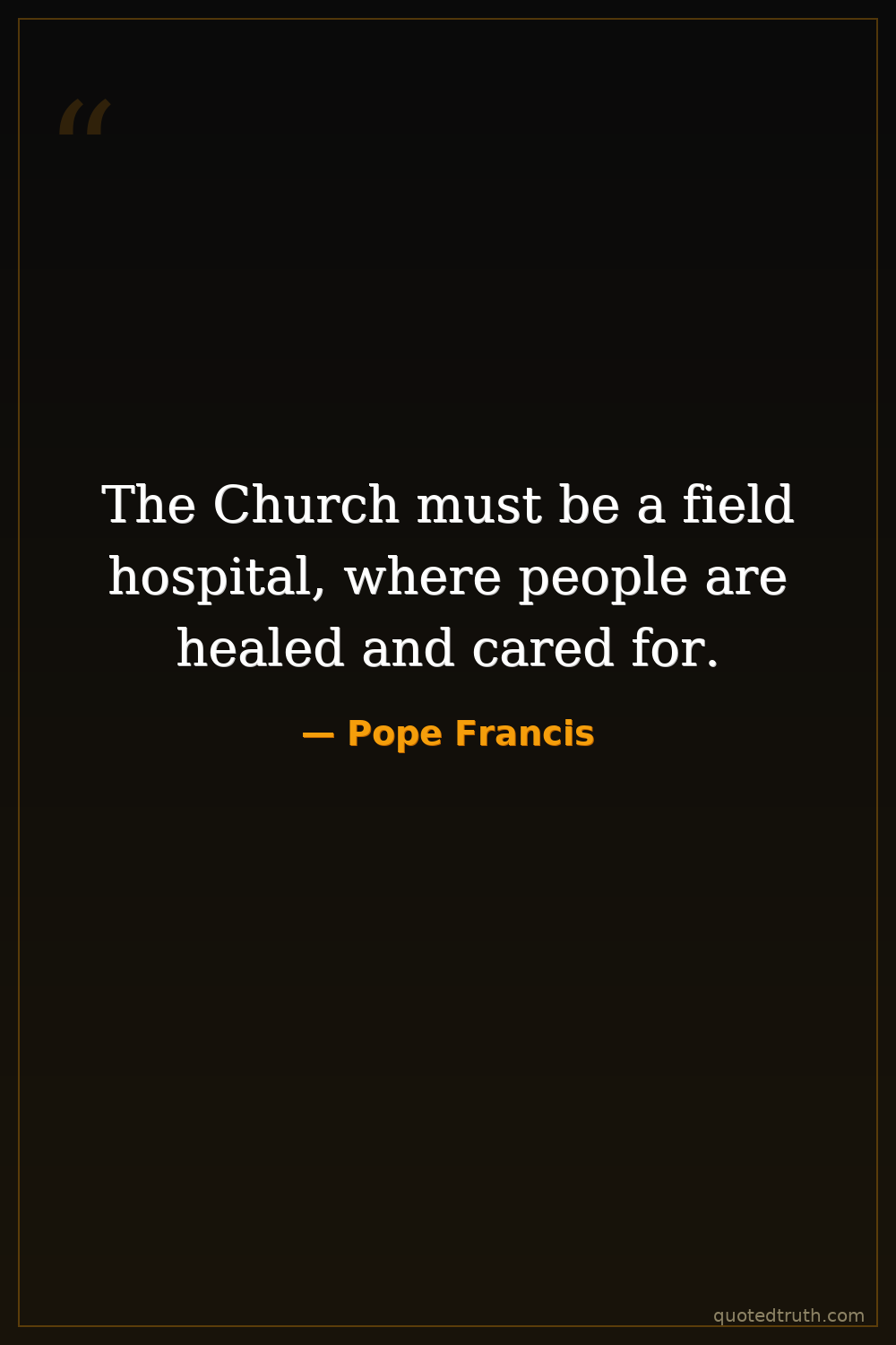 The Church must be a field hospital, where people are healed and cared for.
