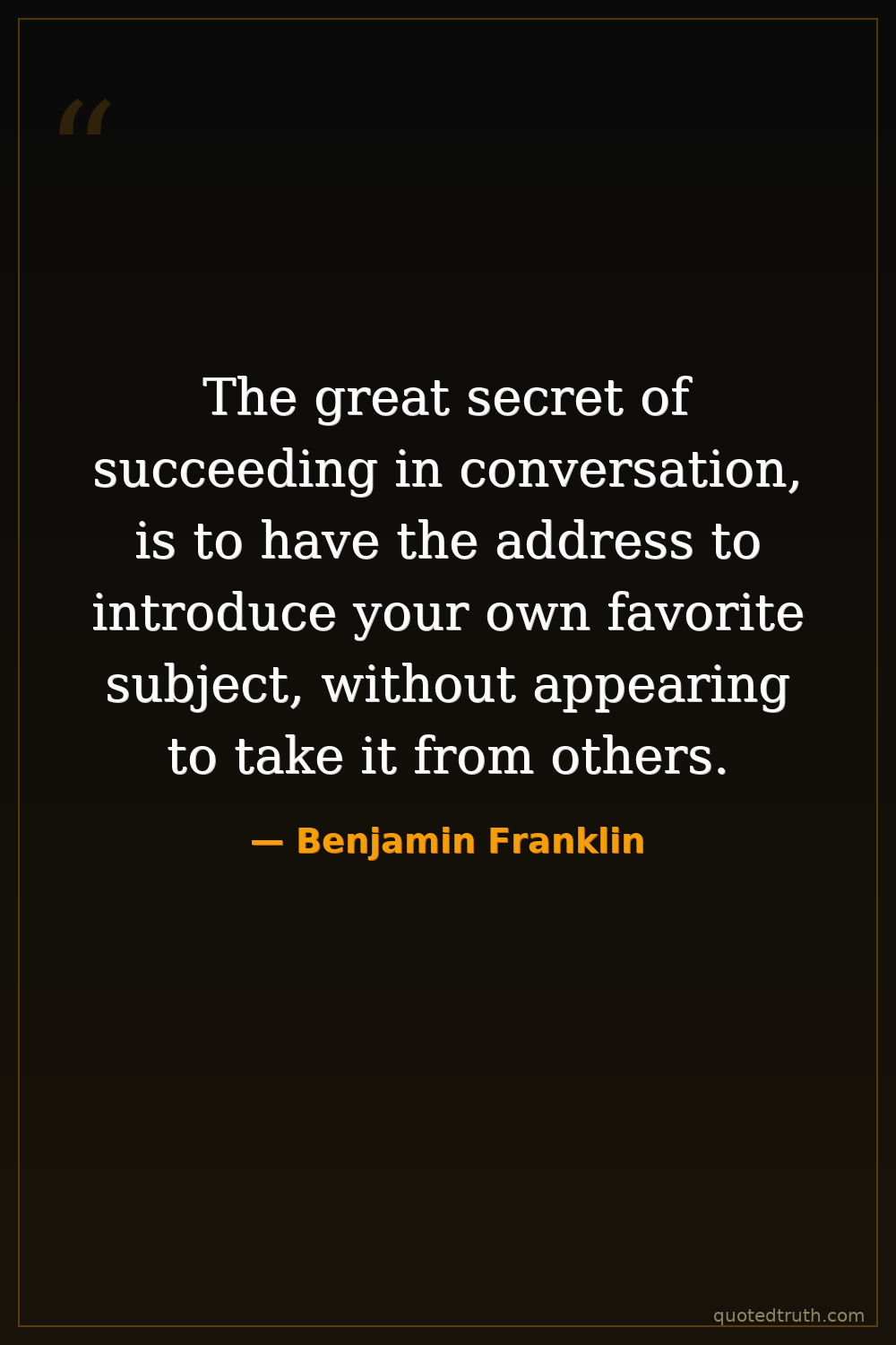 The great secret of succeeding in conversation, is to have the address to introduce your own favorite subject, without appearing to take it from others.