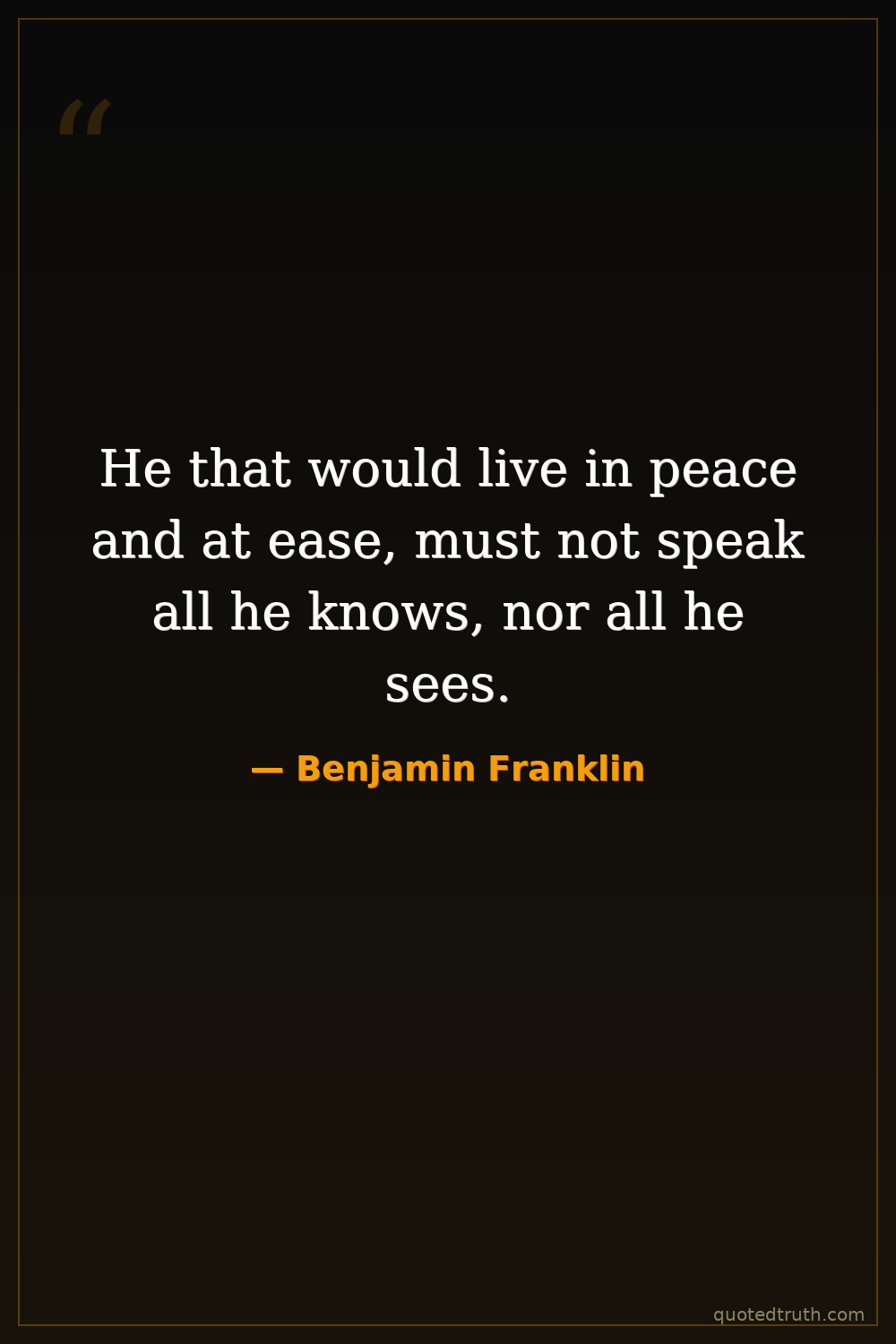 He that would live in peace and at ease, must not speak all he knows, nor all he sees.