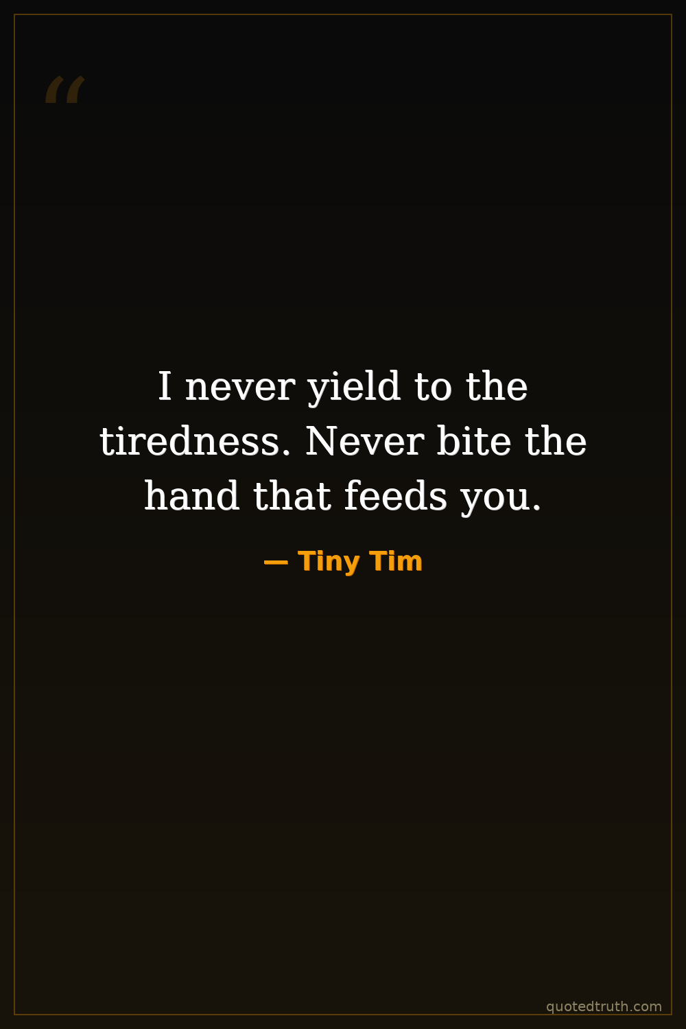 I never yield to the tiredness. Never bite the hand that feeds you.