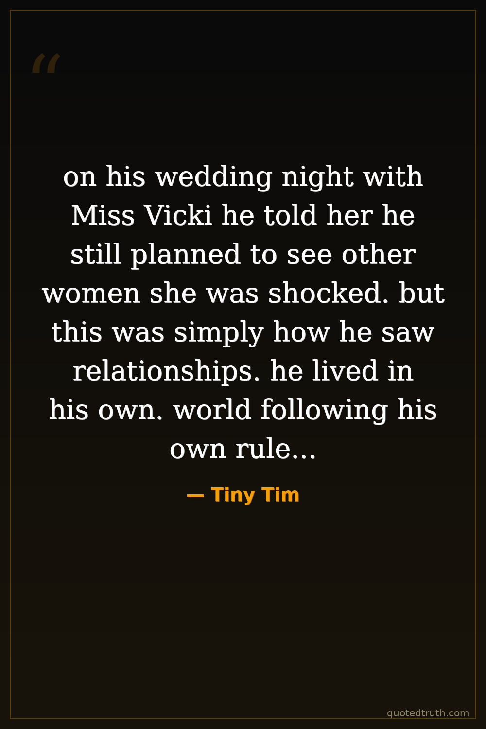on his wedding night with Miss Vicki he told her he still planned to see other women she was shocked. but this was simply how he saw relationships. he lived in his own. world following his own rules. whether it was hygiene money or for marriage tiny Tim never did things the way people expected