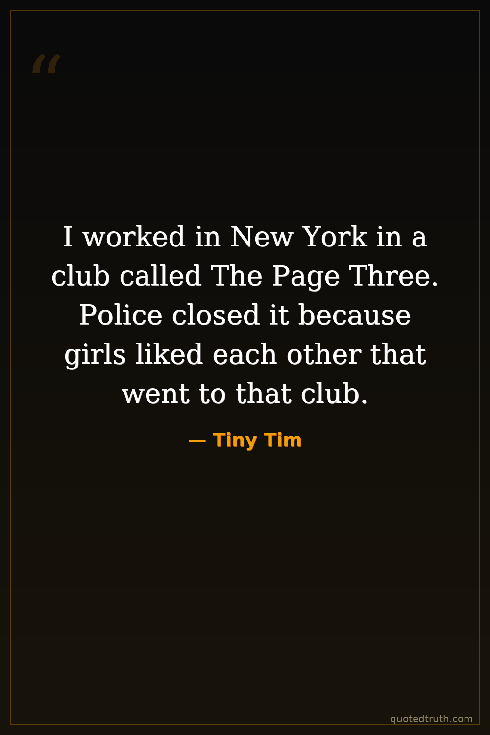 I worked in New York in a club called The Page Three. Police closed it because girls liked each other that went to that club.