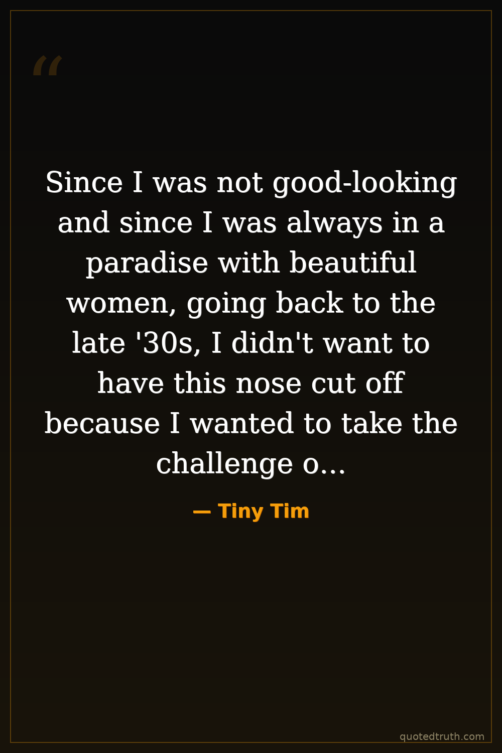 Since I was not good-looking and since I was always in a paradise with beautiful women, going back to the late '30s, I didn't want to have this nose cut off because I wanted to take the challenge of making it without an operation.