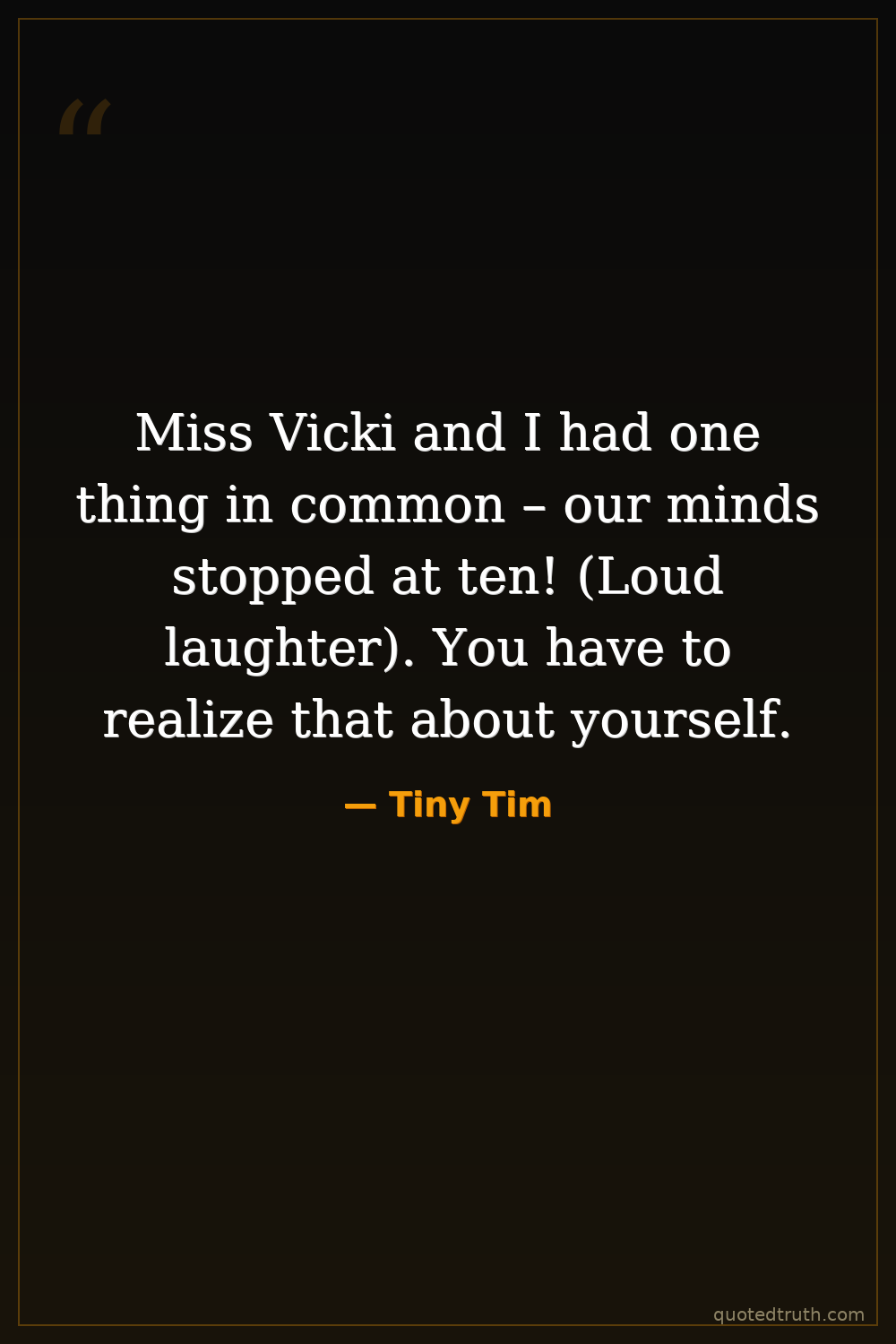 Miss Vicki and I had one thing in common – our minds stopped at ten! (Loud laughter). You have to realize that about yourself.