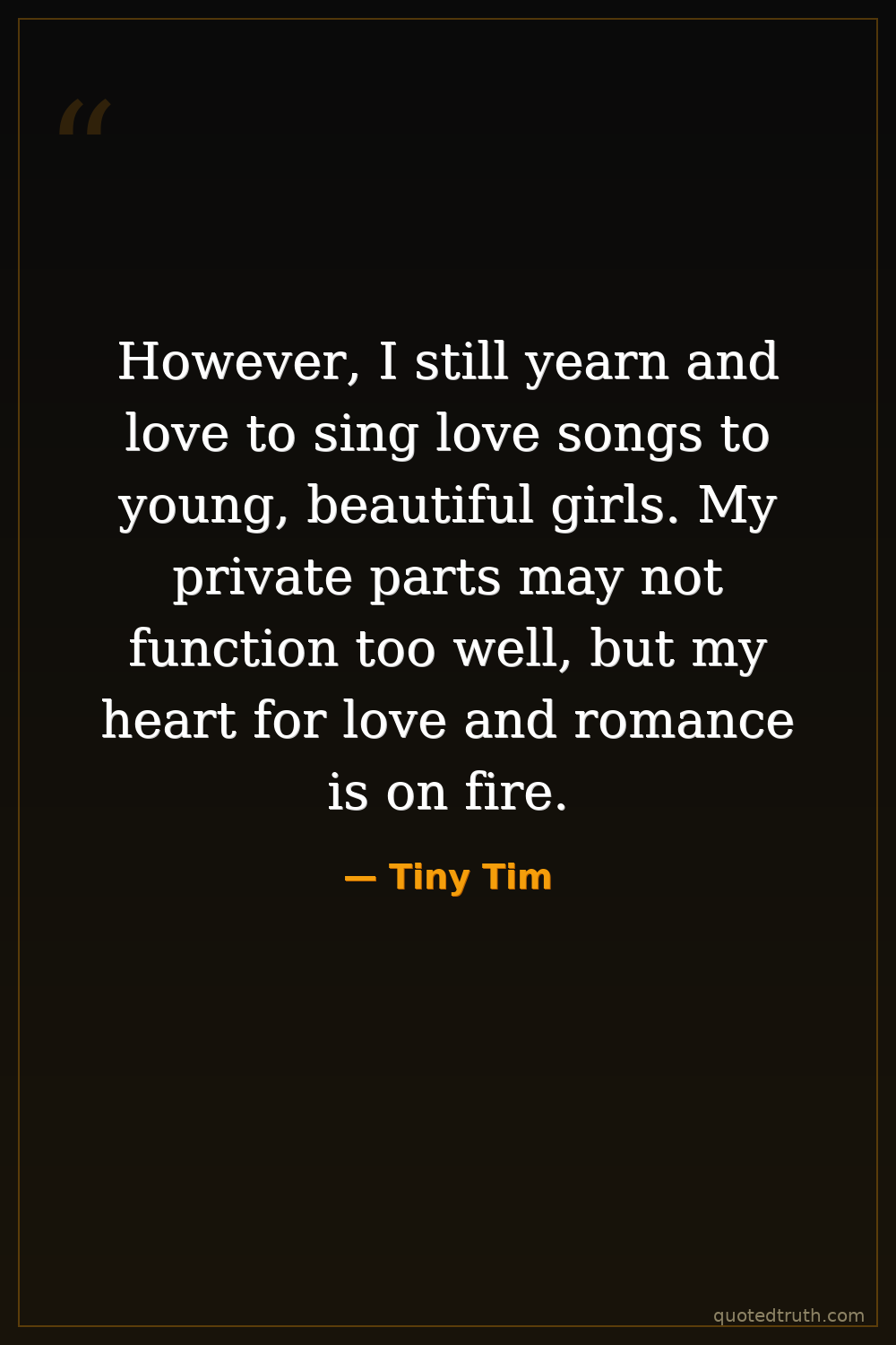 However, I still yearn and love to sing love songs to young, beautiful girls. My private parts may not function too well, but my heart for love and romance is on fire.