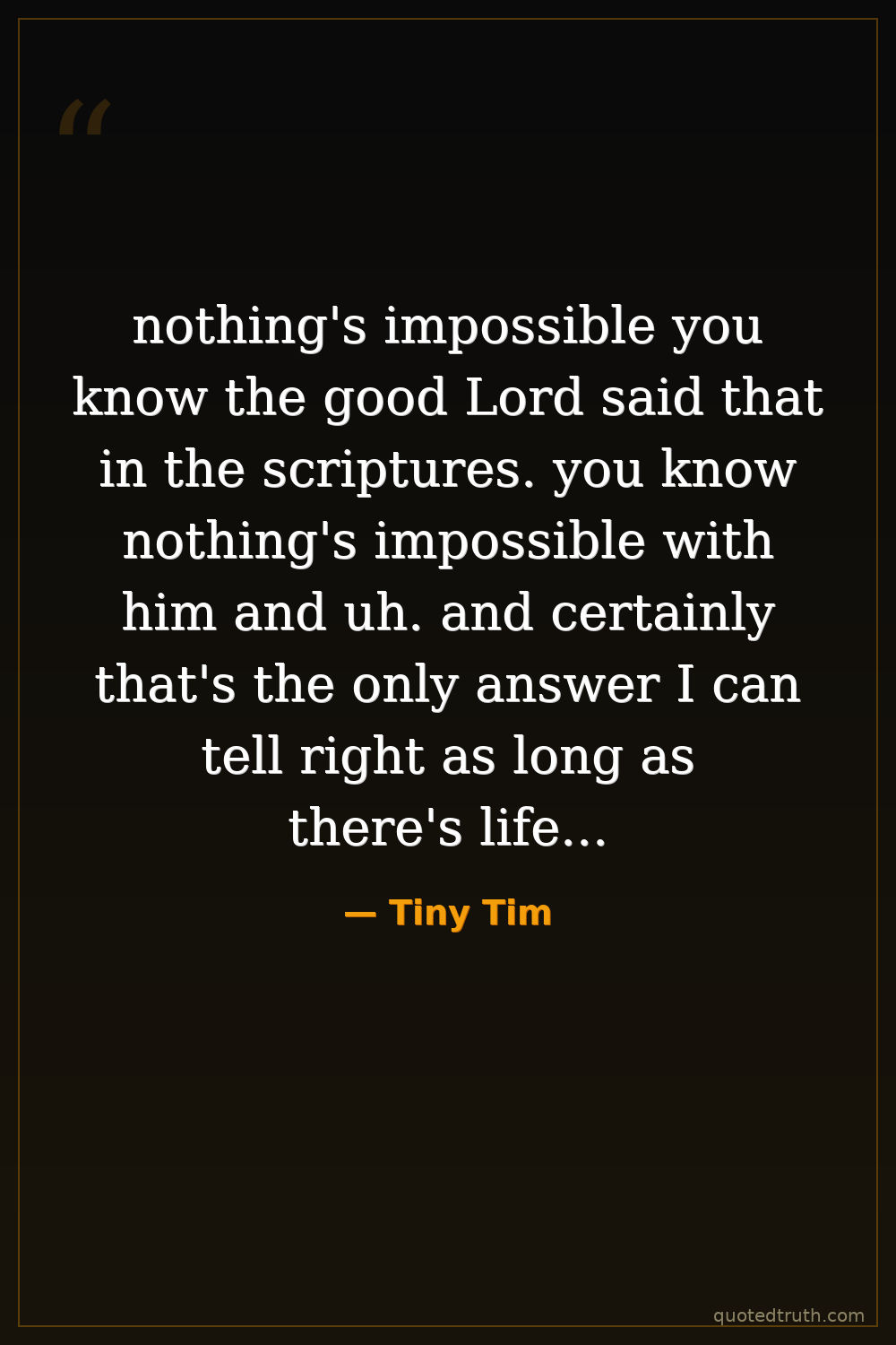nothing's impossible you know the good Lord said that in the scriptures. you know nothing's impossible with him and uh. and certainly that's the only answer I can tell right as long as there's life uh uh there's always a way.