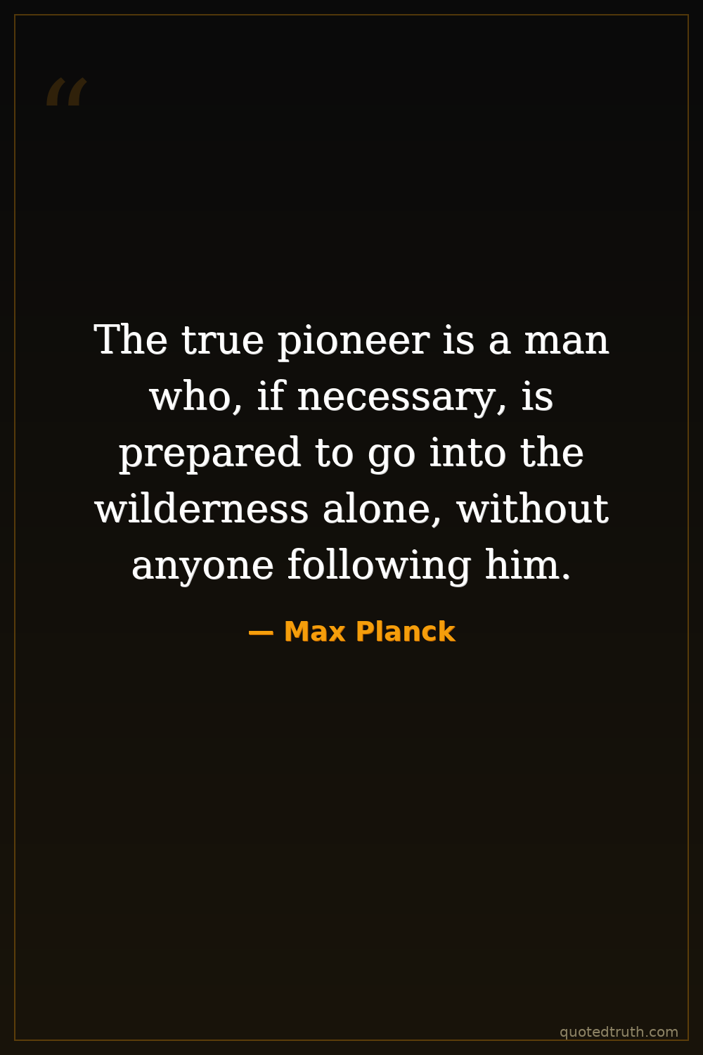 The true pioneer is a man who, if necessary, is prepared to go into the wilderness alone, without anyone following him.