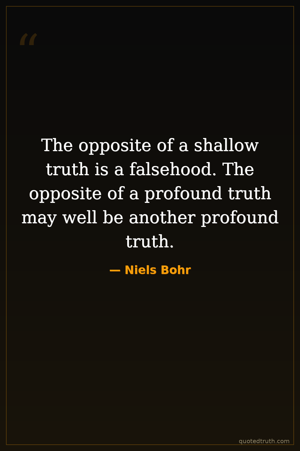 The opposite of a shallow truth is a falsehood. The opposite of a profound truth may well be another profound truth.