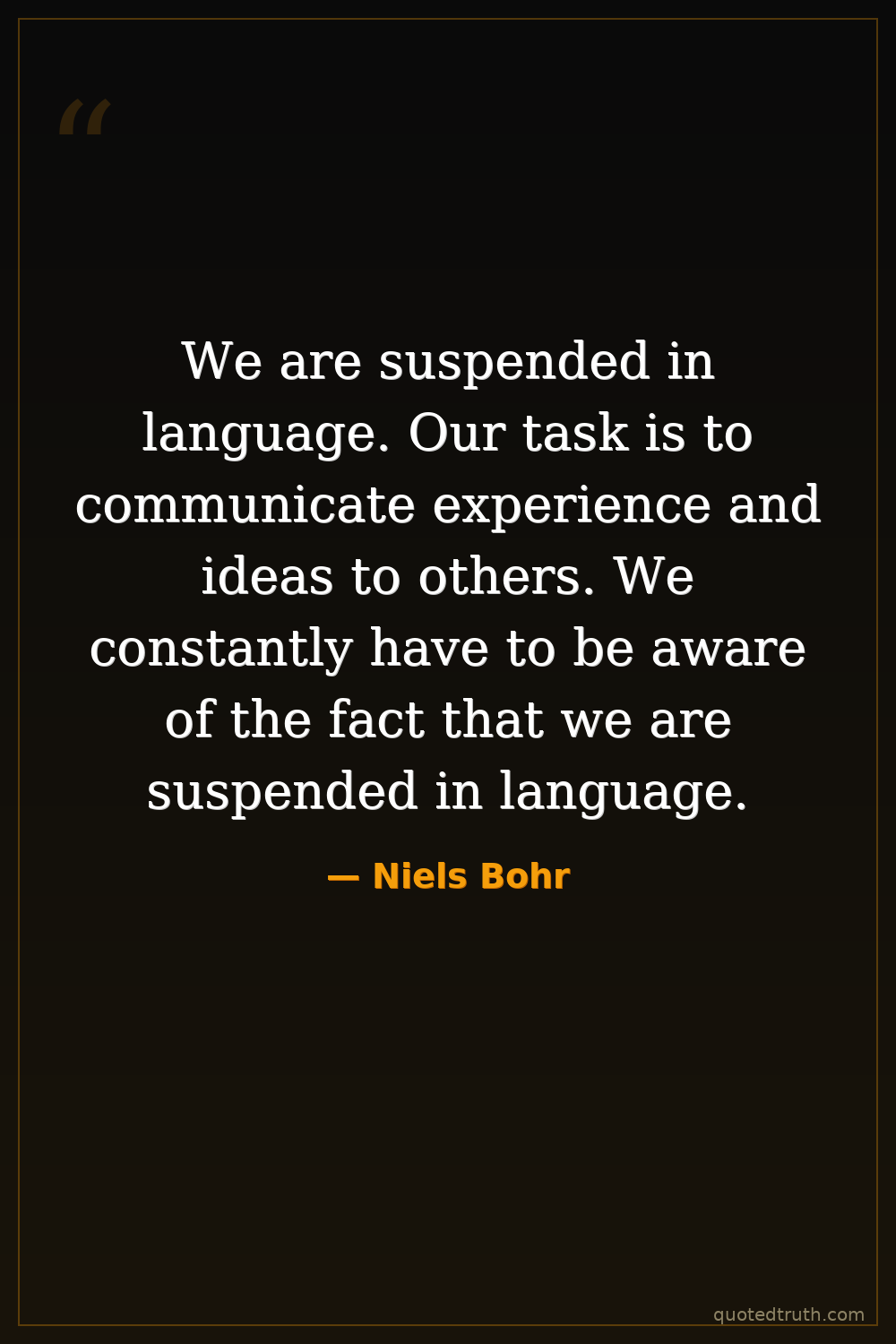 We are suspended in language. Our task is to communicate experience and ideas to others. We constantly have to be aware of the fact that we are suspended in language.