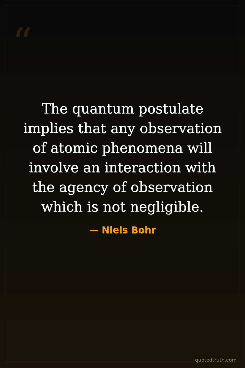 The quantum postulate implies that any observation of atomic phenomena will involve an interaction with the agency of observation which is not negligible.