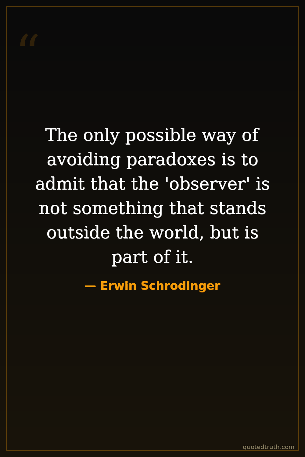 The only possible way of avoiding paradoxes is to admit that the 'observer' is not something that stands outside the world, but is part of it.