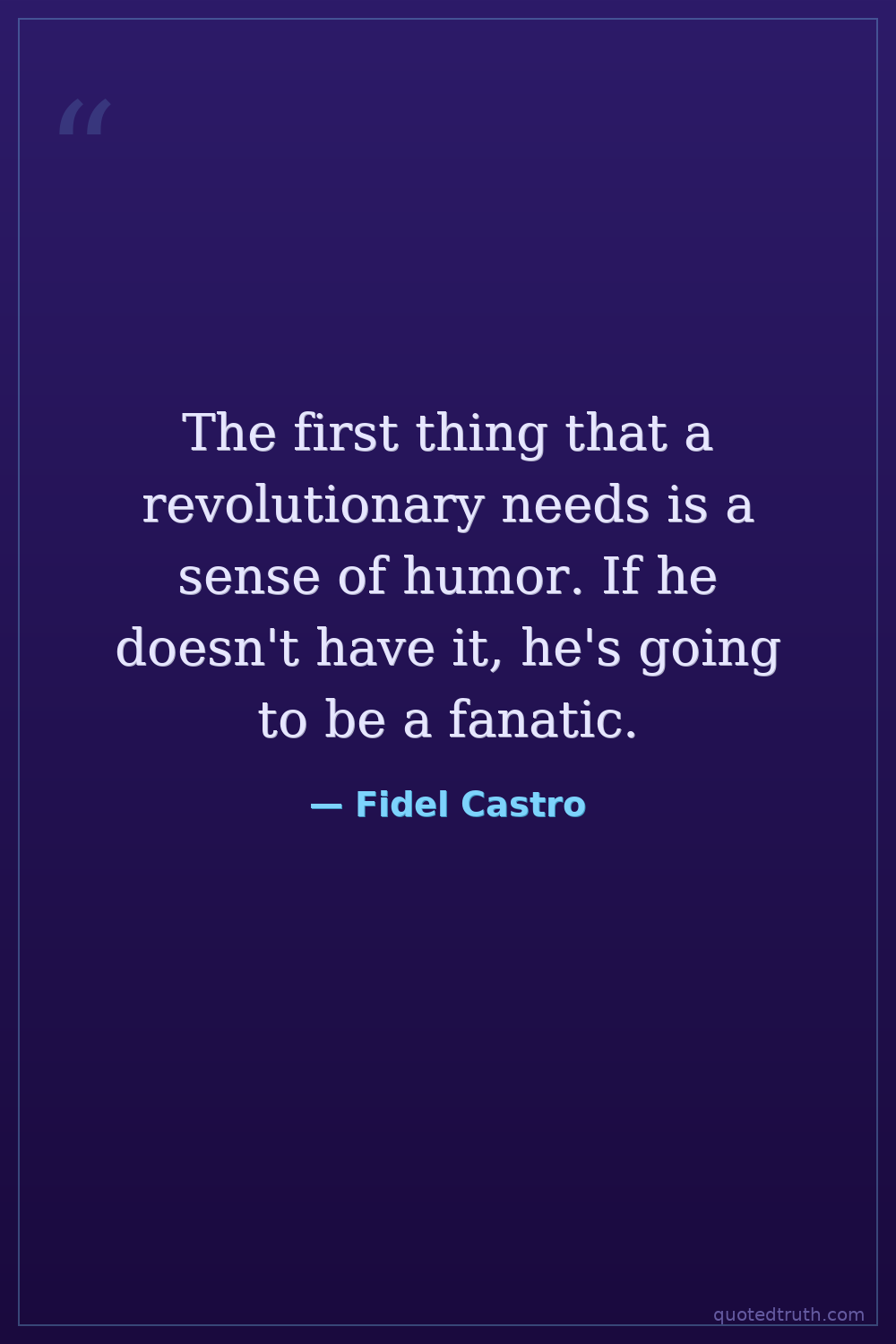 The first thing that a revolutionary needs is a sense of humor. If he doesn't have it, he's going to be a fanatic.