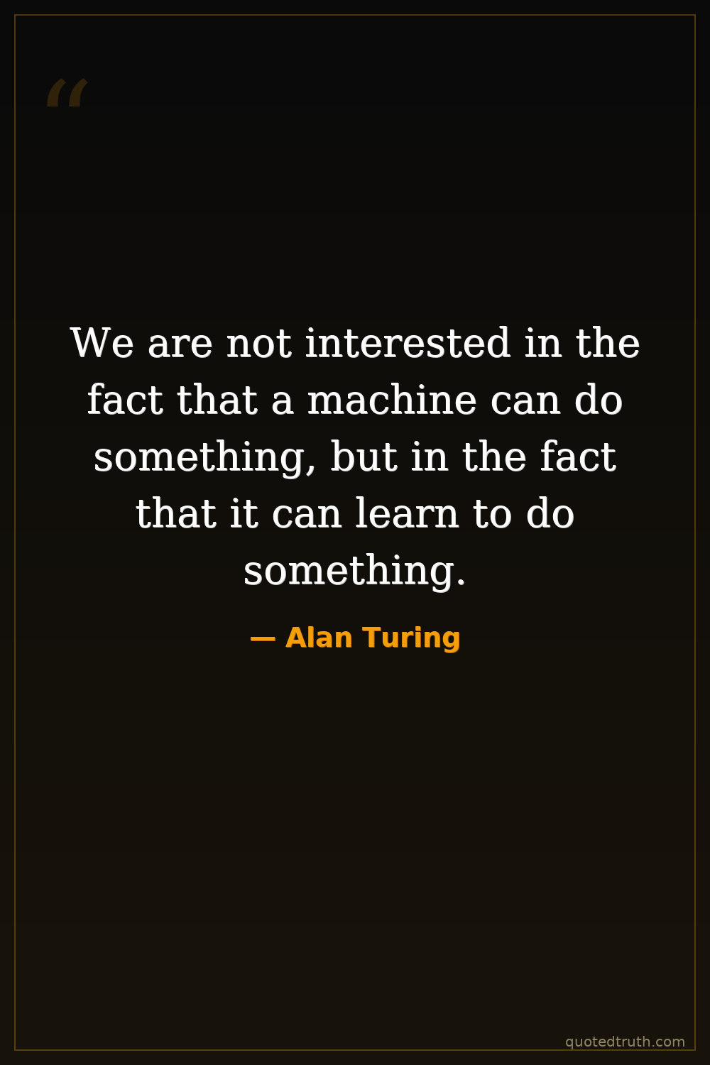 We are not interested in the fact that a machine can do something, but in the fact that it can learn to do something.
