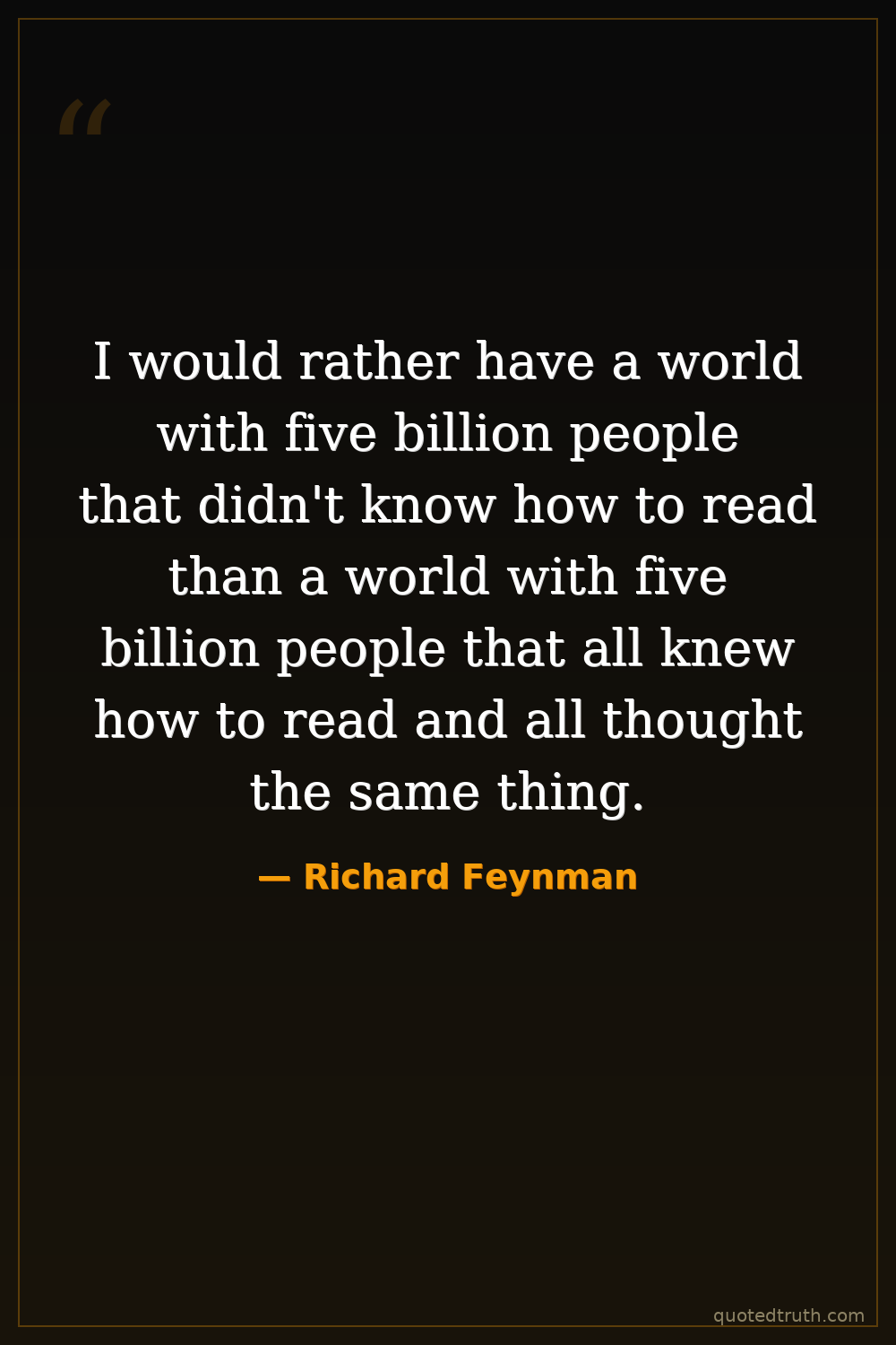 I would rather have a world with five billion people that didn't know how to read than a world with five billion people that all knew how to read and all thought the same thing.