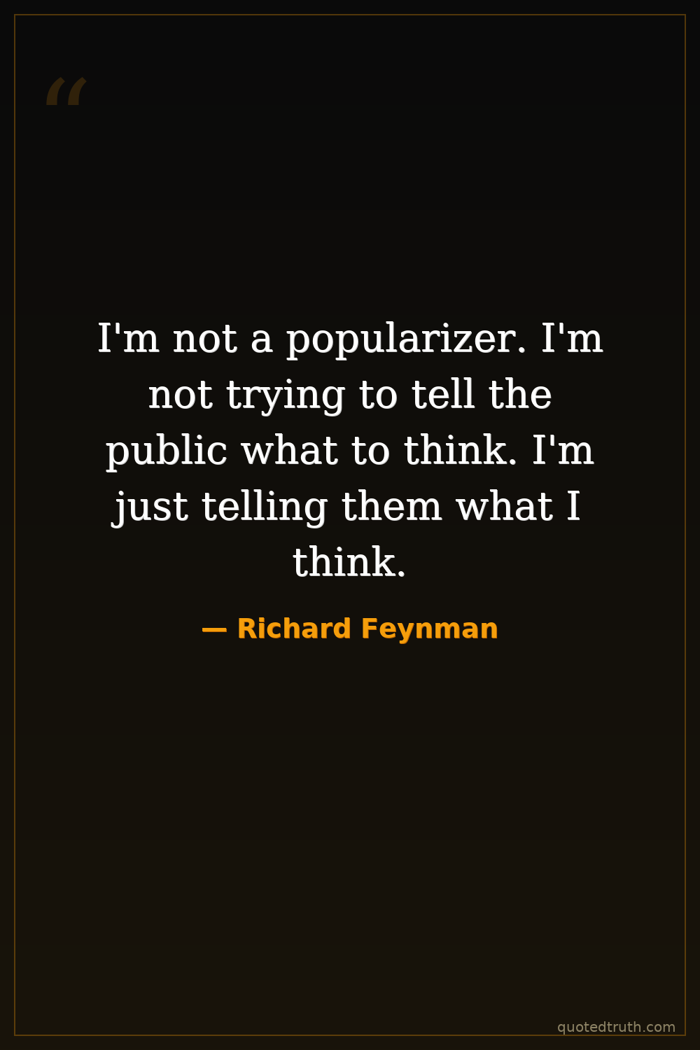 I'm not a popularizer. I'm not trying to tell the public what to think. I'm just telling them what I think.