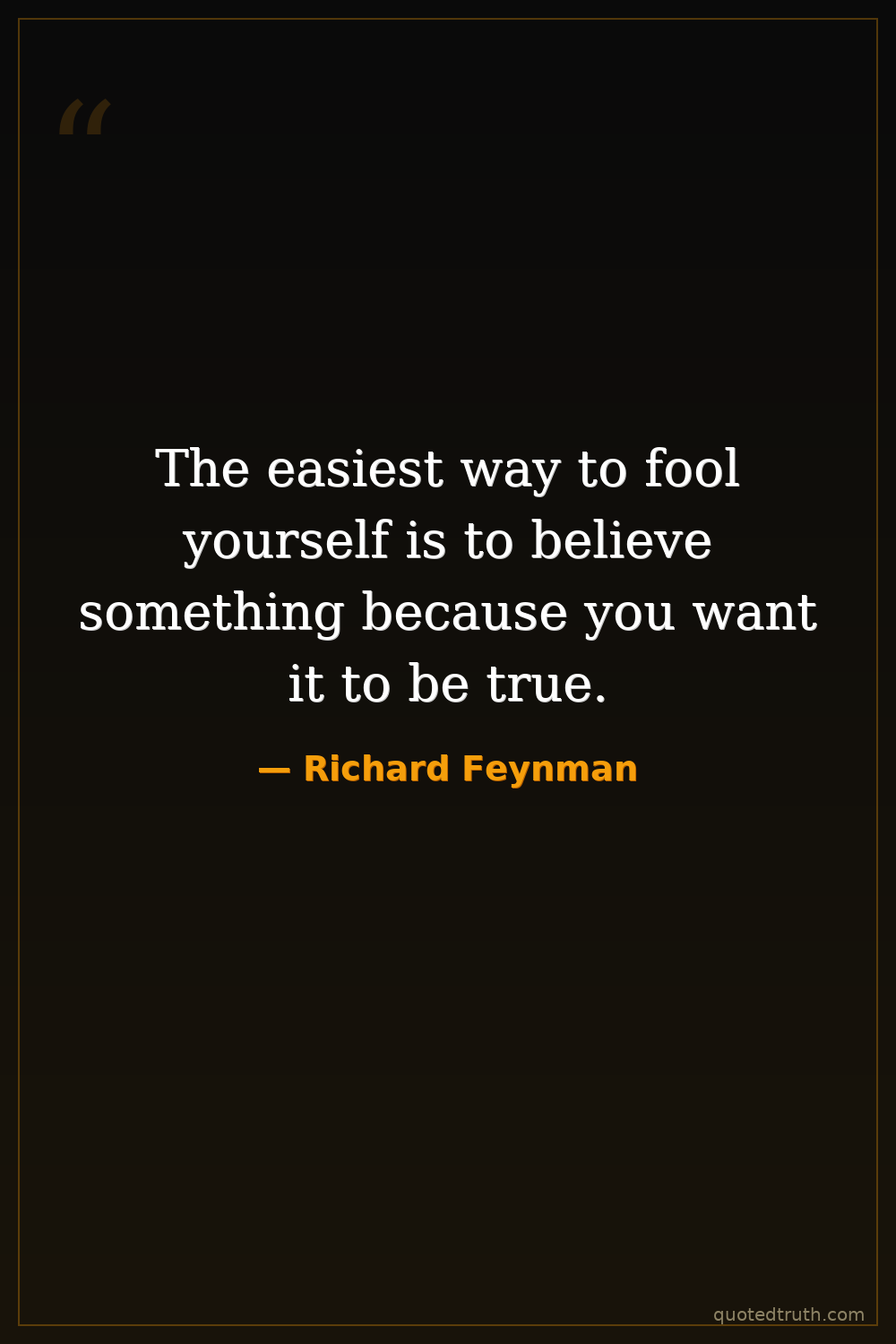 The easiest way to fool yourself is to believe something because you want it to be true.