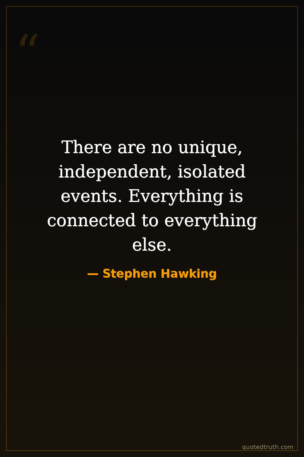 There are no unique, independent, isolated events. Everything is connected to everything else.