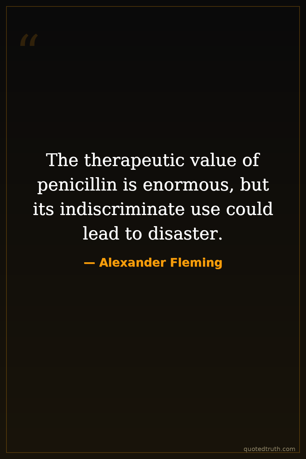 The therapeutic value of penicillin is enormous, but its indiscriminate use could lead to disaster.