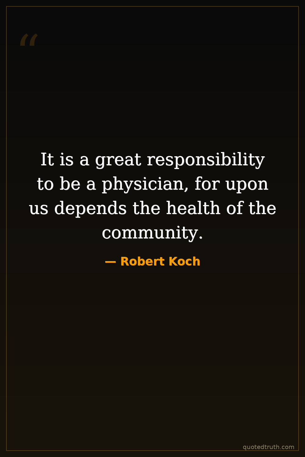 It is a great responsibility to be a physician, for upon us depends the health of the community.