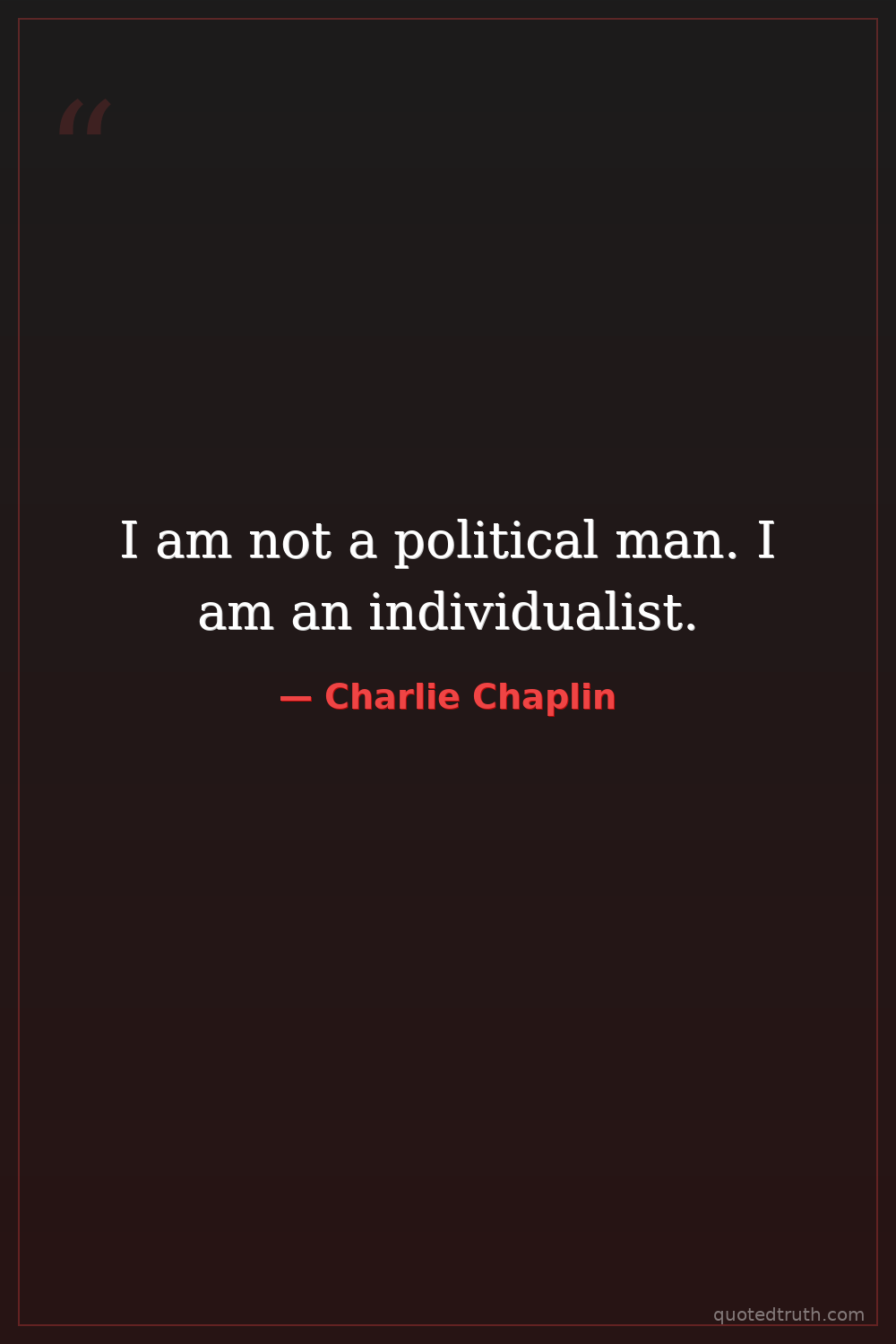 I am not a political man. I am an individualist.