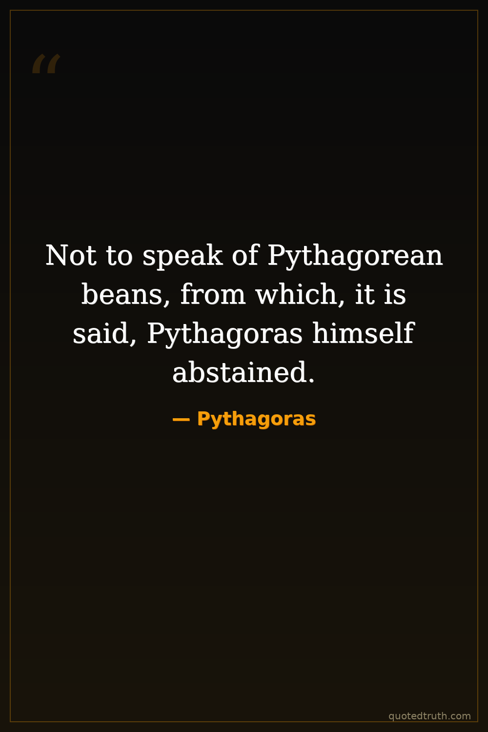 Not to speak of Pythagorean beans, from which, it is said, Pythagoras himself abstained.