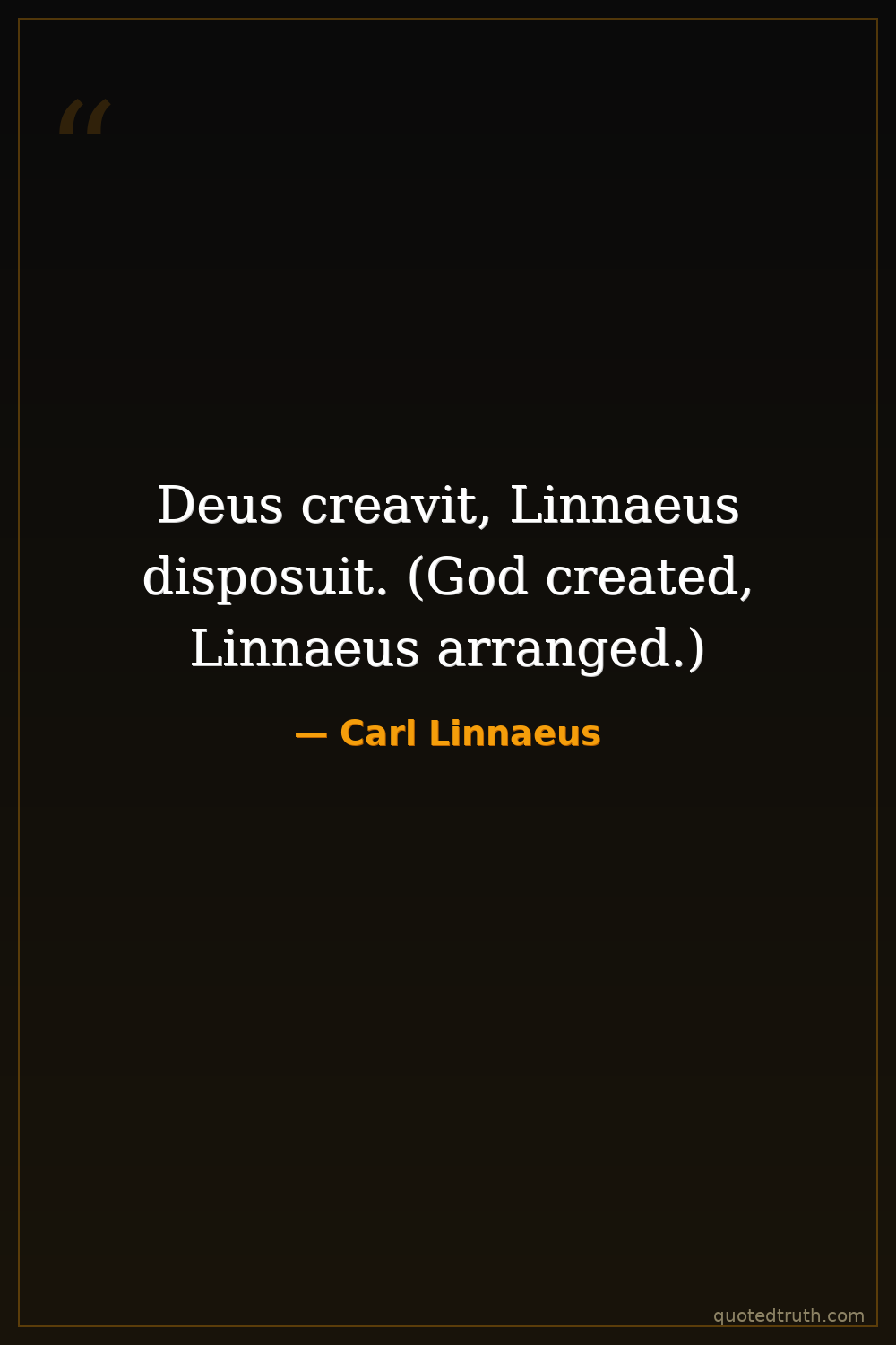 Deus creavit, Linnaeus disposuit. (God created, Linnaeus arranged.)