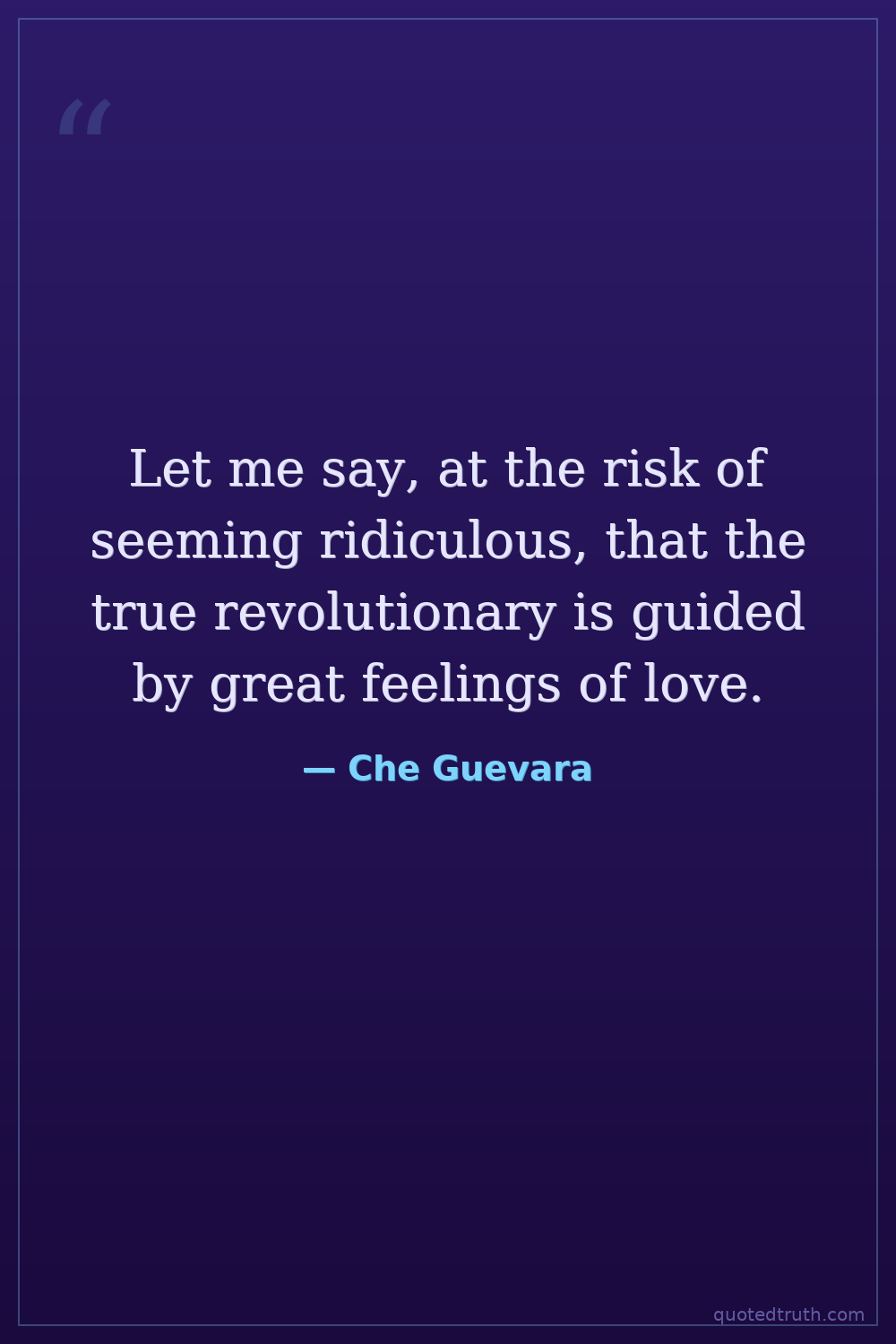 Let me say, at the risk of seeming ridiculous, that the true revolutionary is guided by great feelings of love.