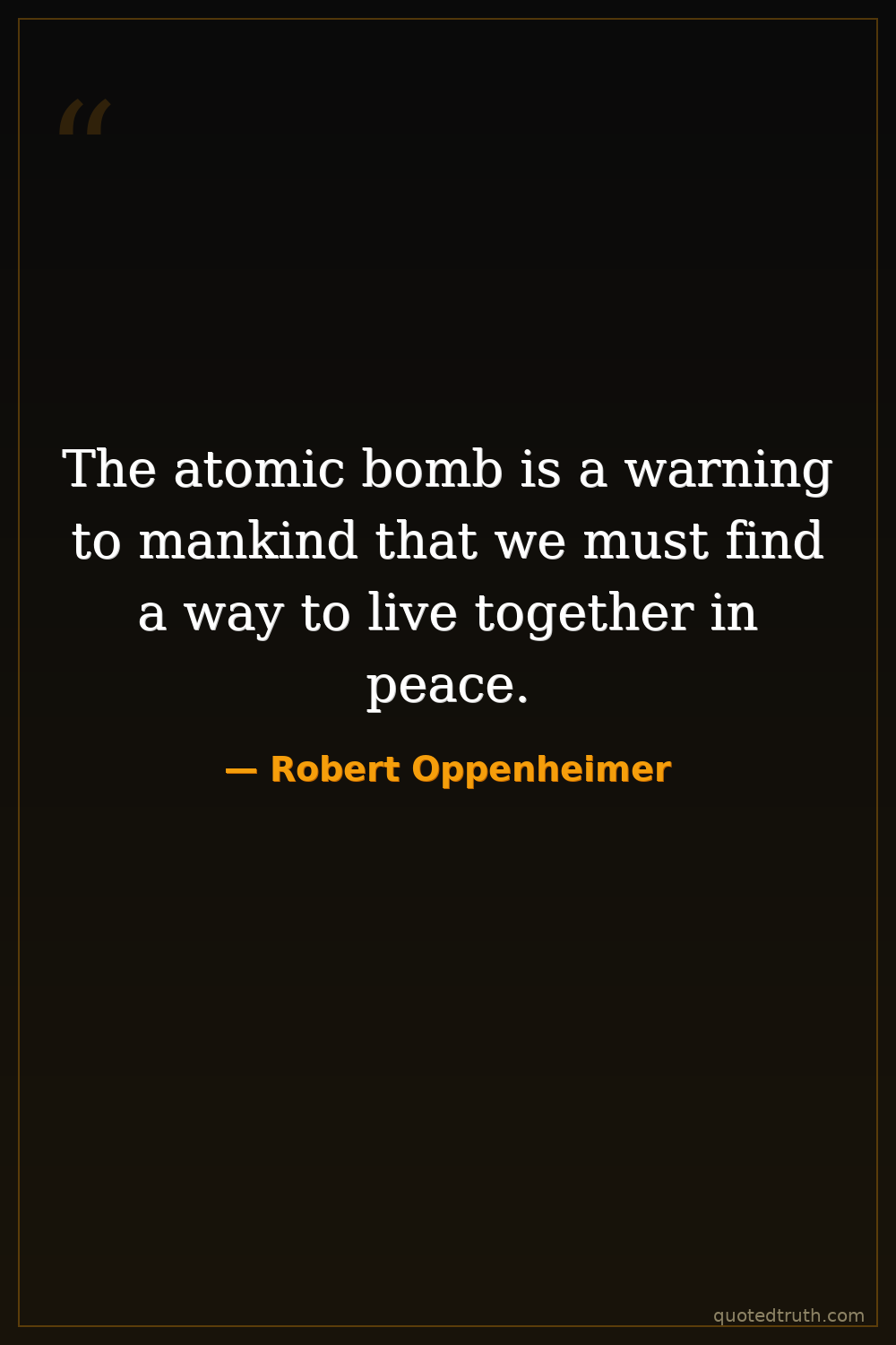 The atomic bomb is a warning to mankind that we must find a way to live together in peace.
