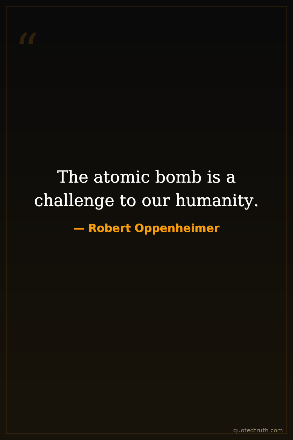 "We have made a thing, a most terrible weapon, that has altered the nature of the world. We have made a thing that has made it impossible for us to live without changing our whole way of life."