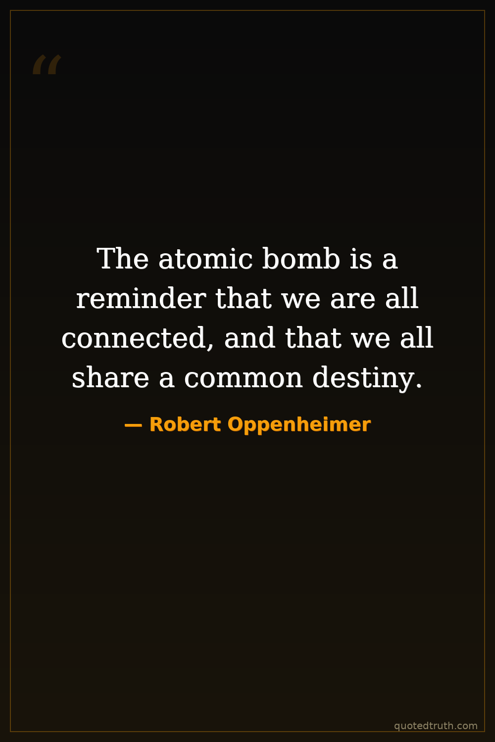 The atomic bomb is a reminder that we are all connected, and that we all share a common destiny.