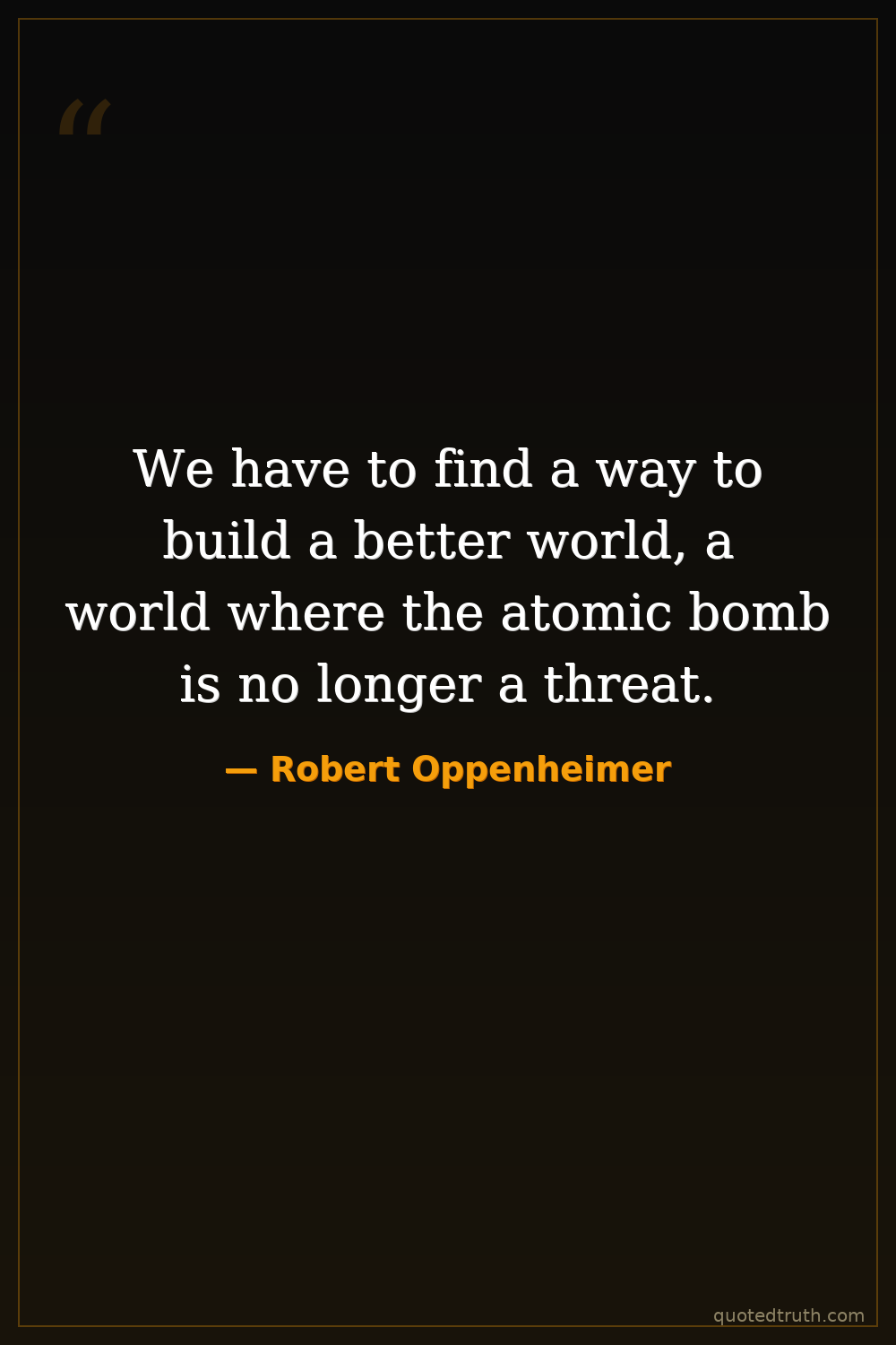 We have to find a way to build a better world, a world where the atomic bomb is no longer a threat.