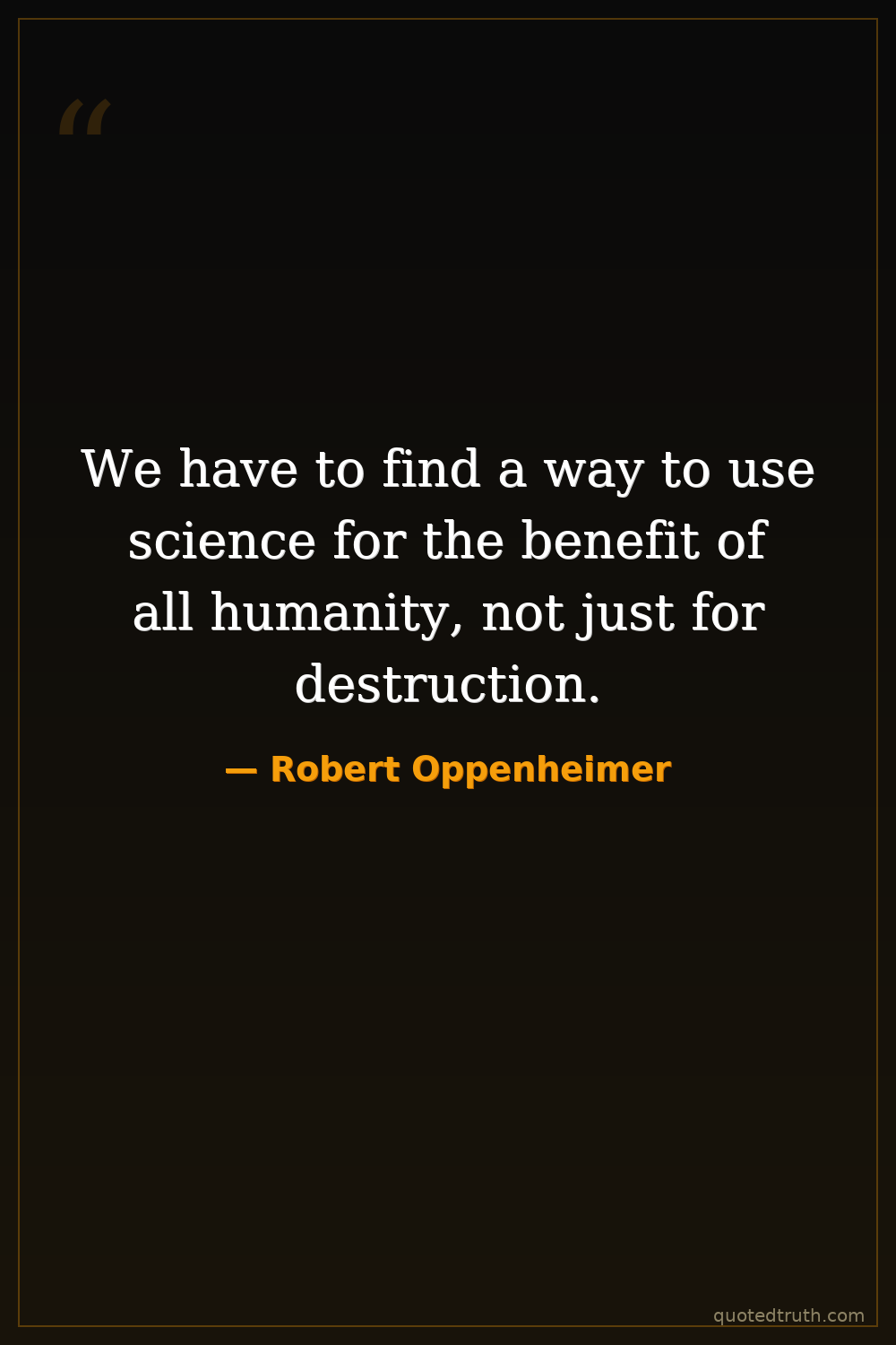We have to find a way to use science for the benefit of all humanity, not just for destruction.
