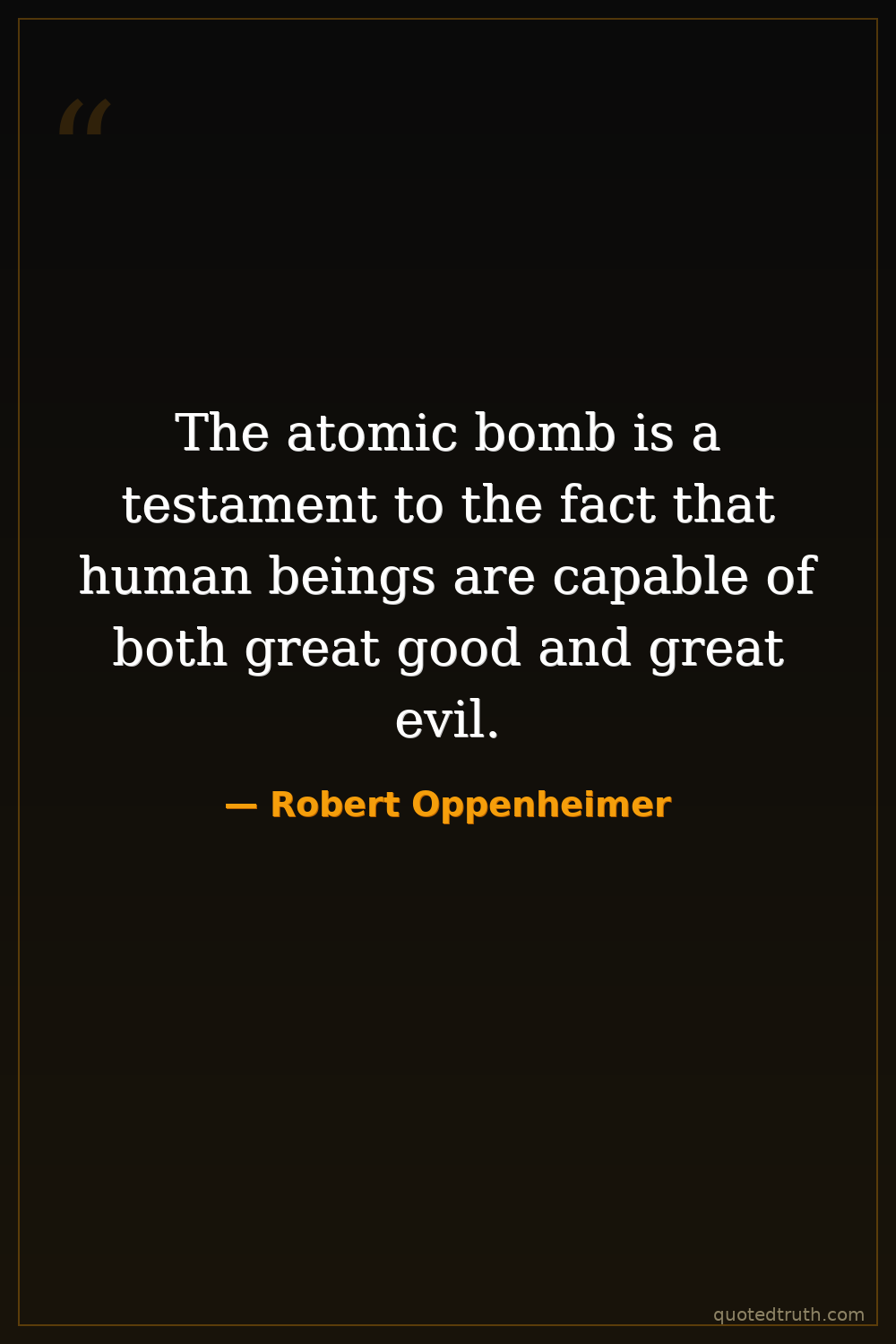 The atomic bomb is a testament to the fact that human beings are capable of both great good and great evil.