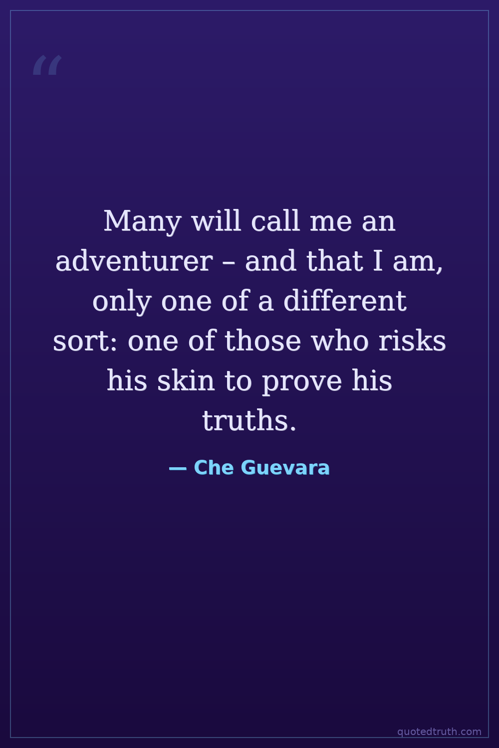 Many will call me an adventurer – and that I am, only one of a different sort: one of those who risks his skin to prove his truths.