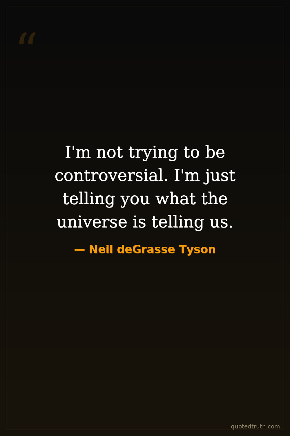 I'm not trying to be controversial. I'm just telling you what the universe is telling us.