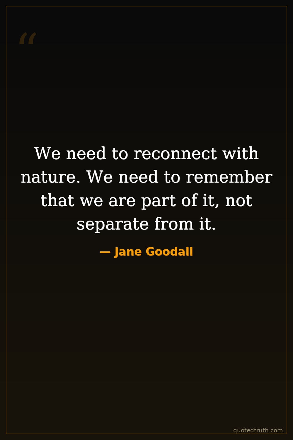 We need to reconnect with nature. We need to remember that we are part of it, not separate from it.