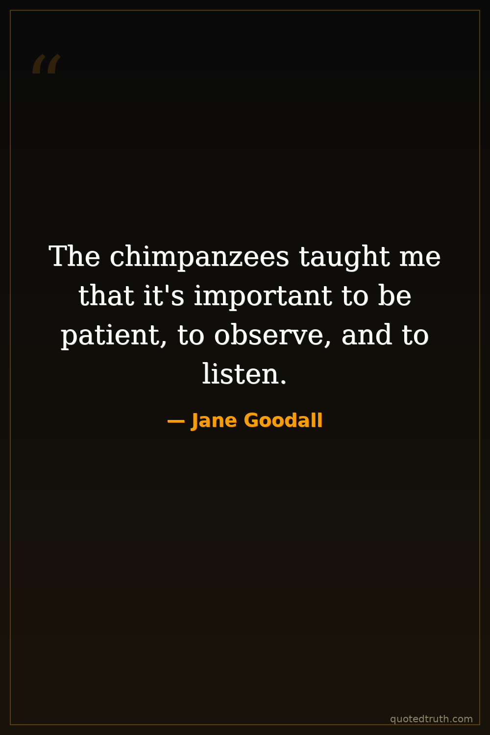 The chimpanzees taught me that it's important to be patient, to observe, and to listen.